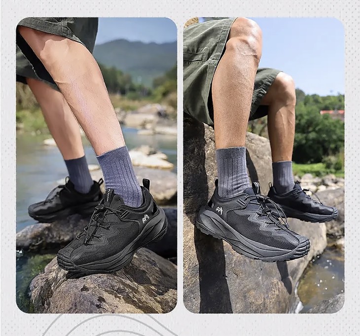 具有出色的抓地力和防滑性 , 鞋子放在坡面上纹丝不动,仿佛给你加了个“安心保险”,轻松驾驭多种复杂地形。