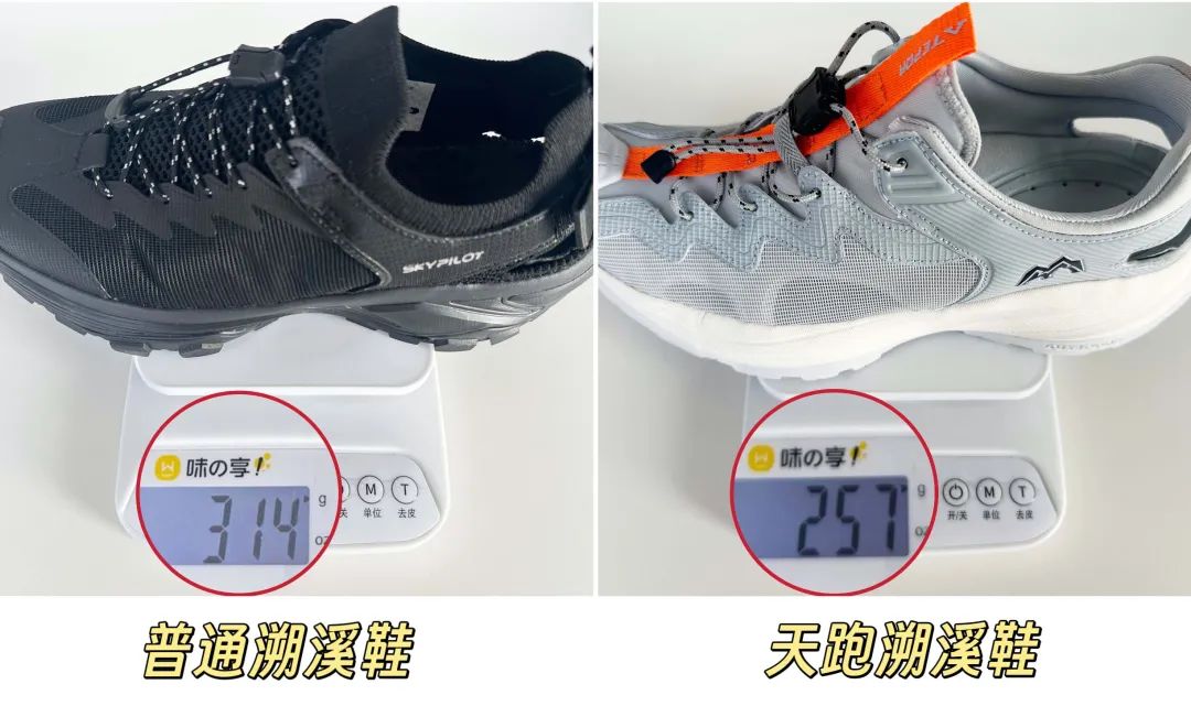 (左边为普通溯溪鞋,右边为天跑溯溪鞋)