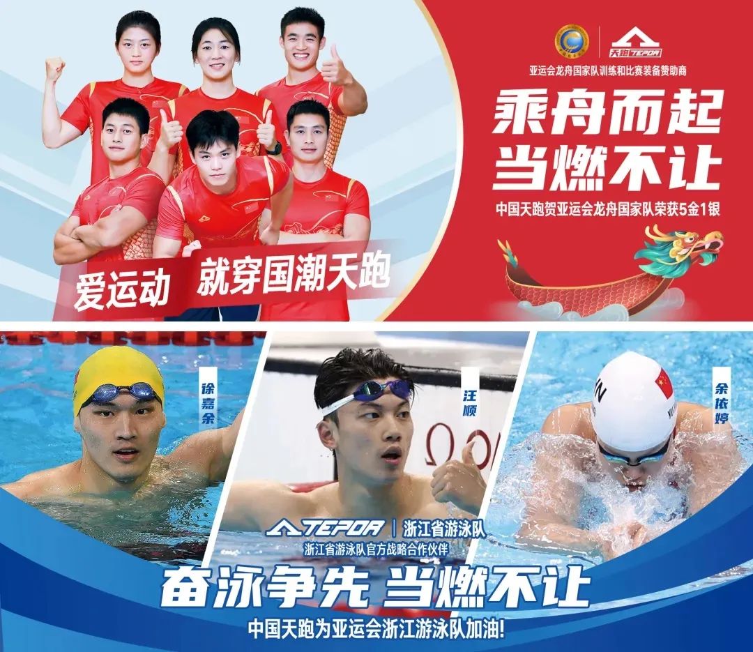 早在2003年,天跑就 成为亚运会龙舟国家队比赛装备赞助商 ,助力中国龙舟队斩获5金1银的辉煌战绩。