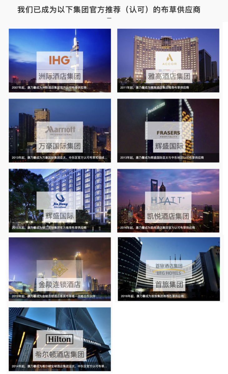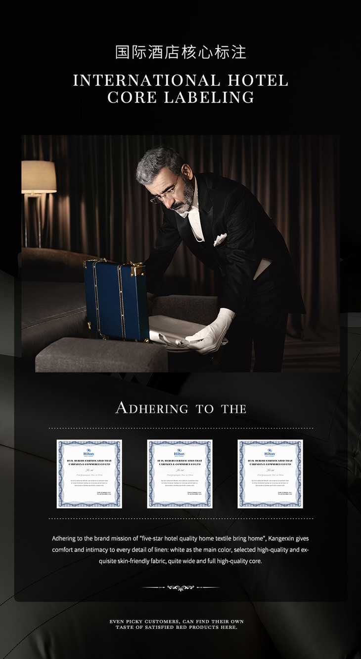 你睡过的五星级酒店,很有可能就是康乃馨纺织集团提供的床品哦!比如中国60%以上的洲际成员酒店、50%以上在华新开业的希尔顿酒店、还有名媛们拼团的丽思卡尔顿酒店。都有用到它家产品哦~