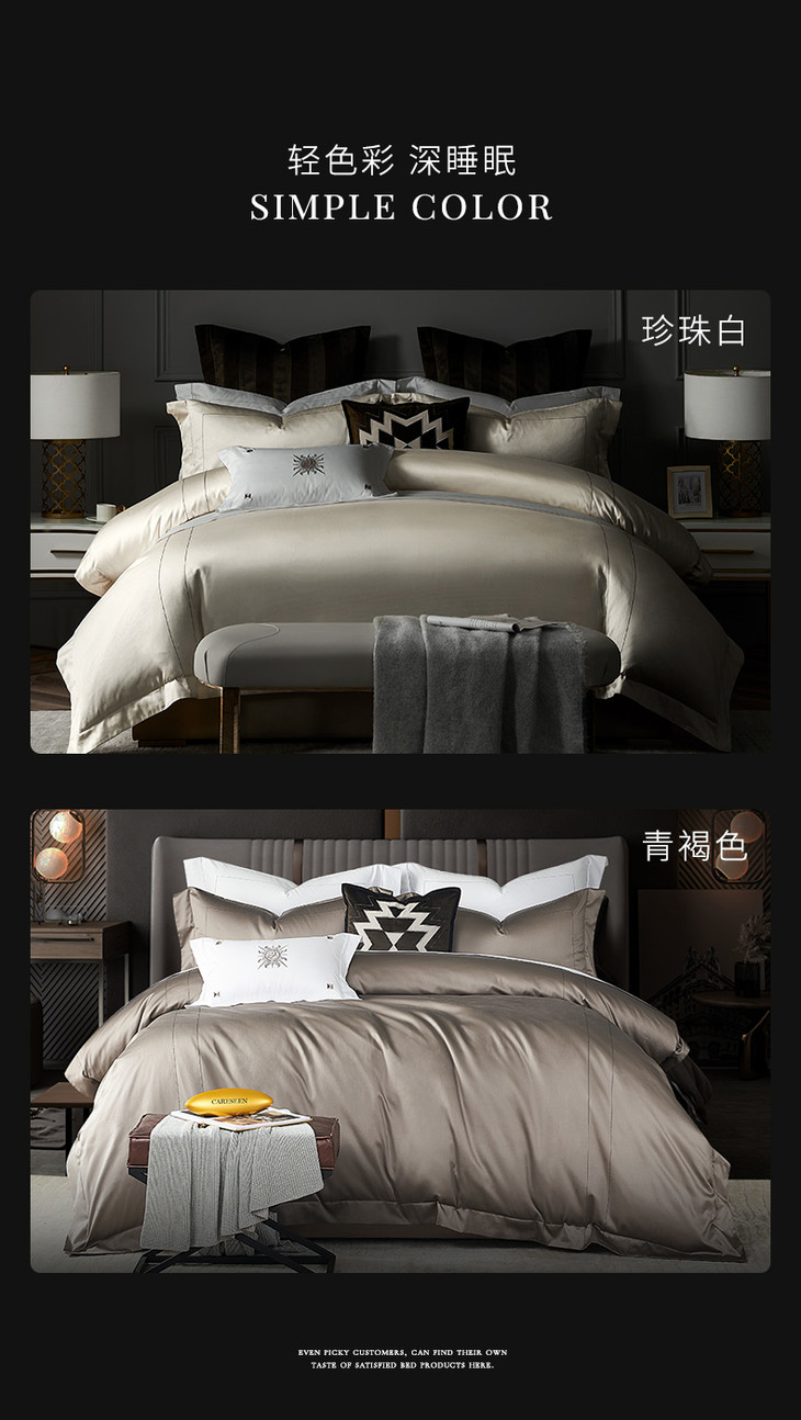 希尔顿 美好年代1889六件套,白色、灰色、香槟色,雅致3种AB配色可选。康尔馨坚持“酒店生活带回家”的理念,致力于让每一位顾客在家中即可享受五星级酒店的舒适睡眠生活,这款四件套严苛选材,100支全棉,如丝如缎的奢宠肌肤新体验,细腻柔滑干爽透气,活性印染,亲肤细腻,柔若无物,给您每夜丝般爽滑。让人难以抵挡,带来总统套房的睡感!