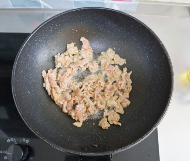 6.再加入牛肉片翻炒,出锅前加1克糖提味关火