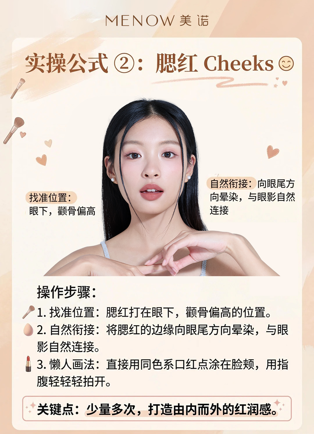 💡 小技巧:可以直接用口红在脸颊点两下,然后用指腹或美妆蛋拍开,妆感更服帖哦~