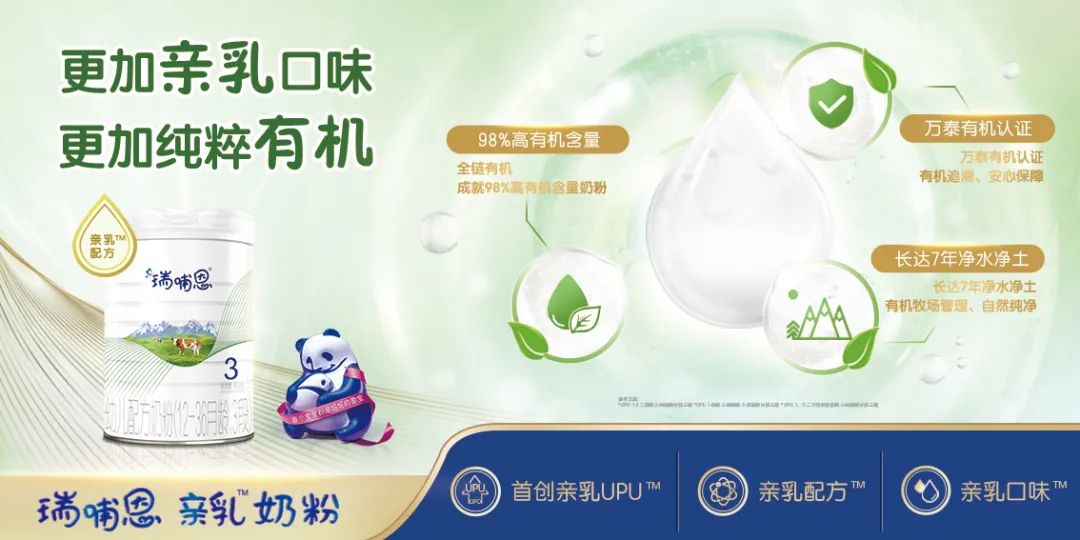 瑞哺恩有机奶粉,更加亲乳口味,更加纯粹有机。口味延续母乳的清淡;奶源来自长达7年净水净土有机牧场管理的有机牧场,采用天然放养模式,产出的每一滴都是有机好奶;更有中欧有机双认证,有机追溯,给宝宝喝上安心保障的有机奶。