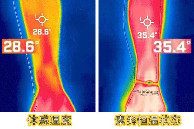 实测:温感仪测得手臂温度在28.6℃,穿上素湃打底衫十分钟后,再次测量温度为35.4℃,直接升高了6.8℃,牛!
