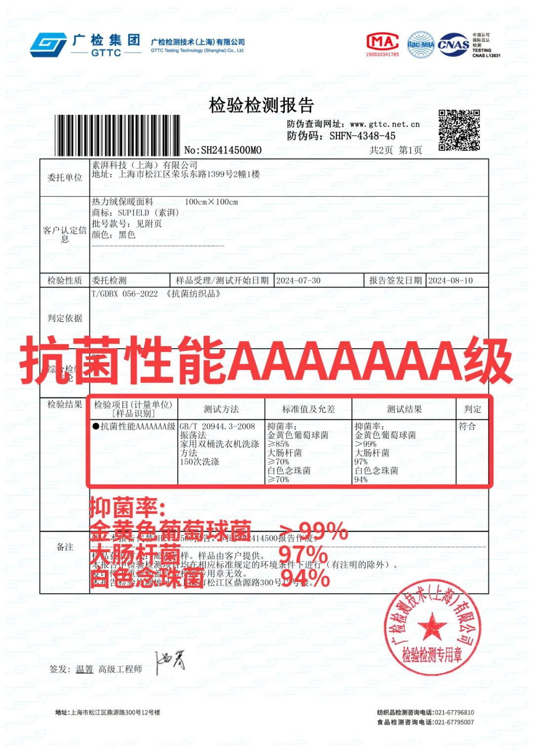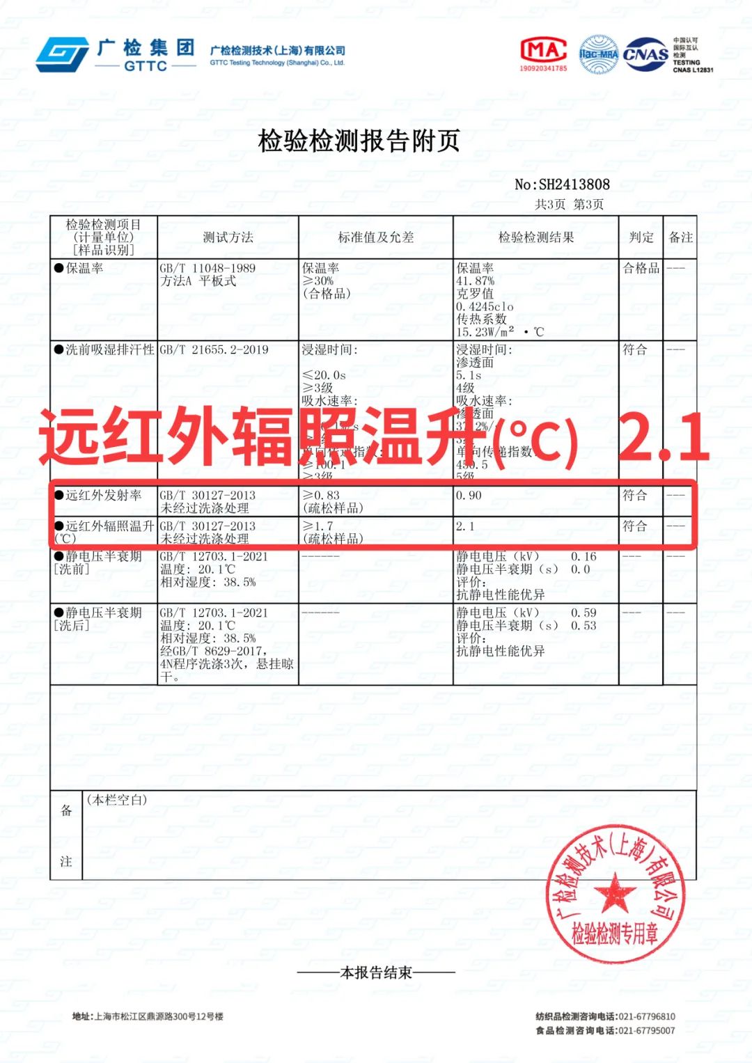 保暖、吸湿透气、抗静电…各项性能都是通过了专业机构检测的,厉害了!