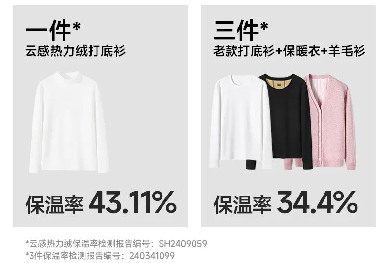 保温率相当于老款打底衫+保暖衣+羊毛衫,一件顶三件,穿在身上不臃肿