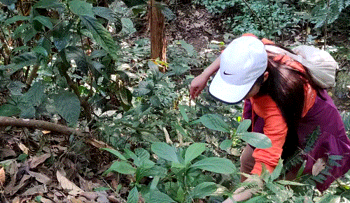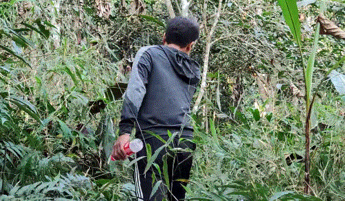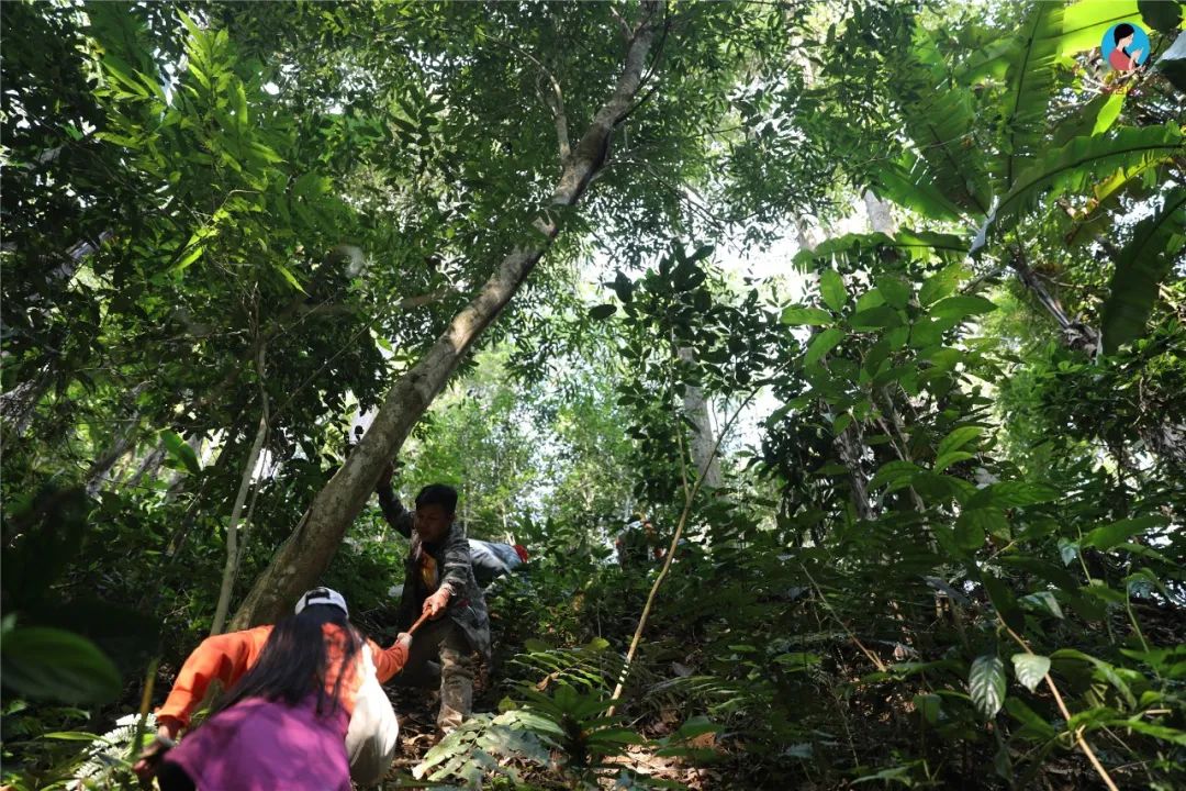 杂草丛生,热带雨林独有的茂盛草木一丝缝隙也不留,茶农小哥抽出砍柴刀:“没路了,等我劈一条出来。”