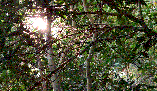 不知名的参天古木名目繁多与古茶树和谐共生,遮天蔽日,树下阴暗潮湿。