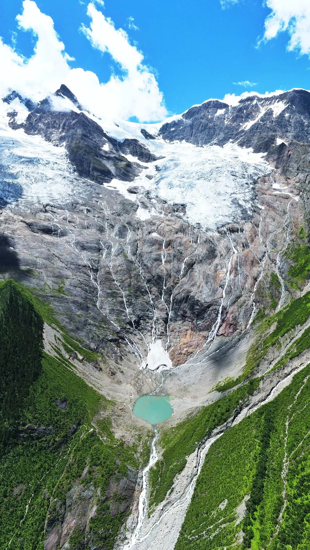 卡瓦格博放眼望去,从山脚 3000 米左右的郁郁葱葱的原始森林到顶峰六千多米的白雪皑皑,层次分明,一副天然立体的垂直自然带画卷映入眼前,饱览春夏秋冬四季不同。冰湖、神湖和神瀑是去雨崩一定要去的地方,当自然神奇第一次以如此裸露的方式出现你眼前时,即使你对色彩再敏感,语言再华丽,面对雨崩时也会陷入短暂的失语。冰湖海拔 3800 米,是一个冰碛湖,前往冰湖的沿途风景不断,森林、溪流、牧场、雪山、河谷、冰川等等,你都可以一网打尽。