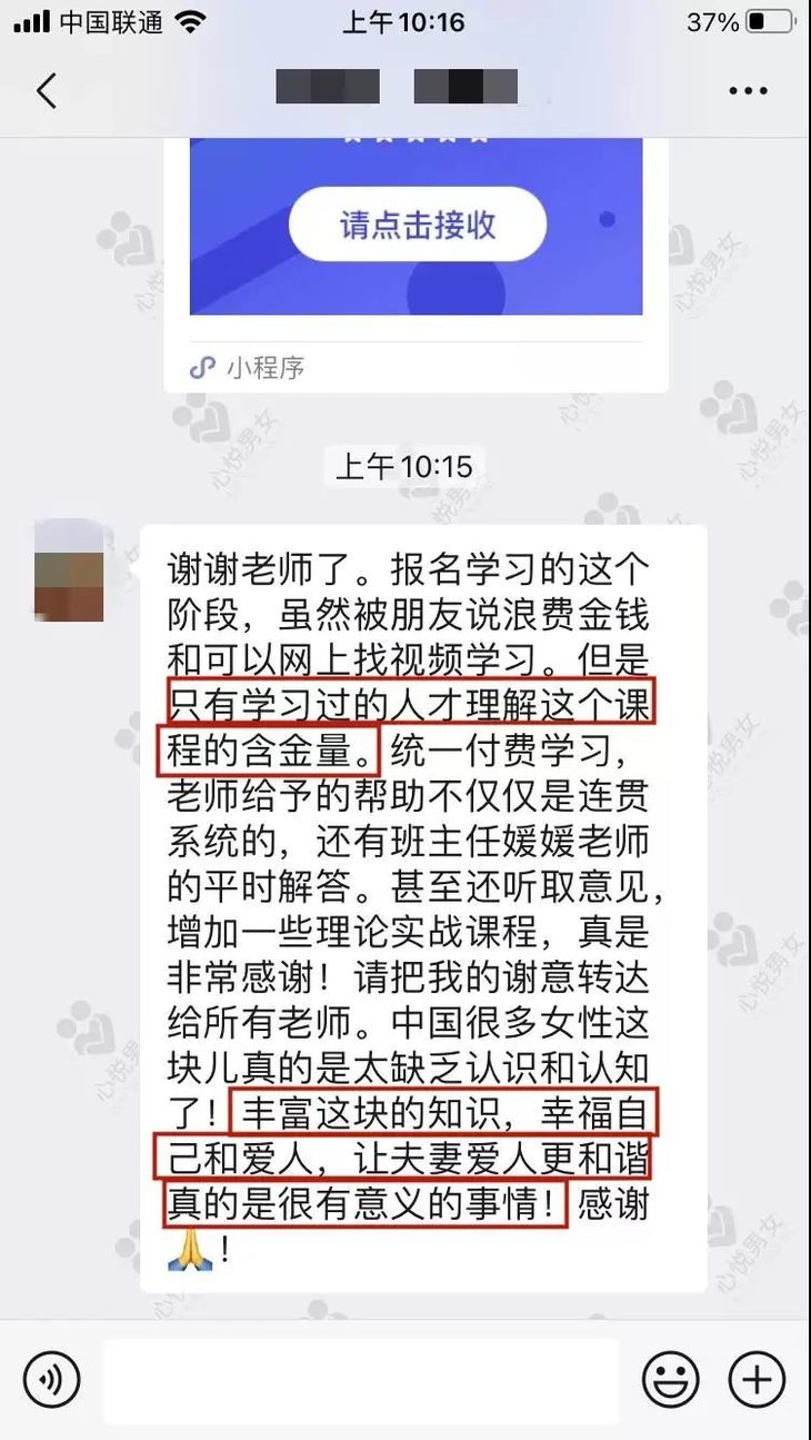 多次收到大家的真实反馈:通过文雅老师的方法,身体健康问题慢慢改善了,还掌握了主动权,老公也更爱自己了。4年的时间里,文雅已帮助30000+对伴侣解决亲密关系难题。诸多大学、医院、妇联等线下机构纷纷邀请她开展两性方面的亲密关系教育。她深知光靠线下能帮到的人有限,她想把这套训练方法分享给更多人。为此,她和她的团队不断总结和提炼,从训练方法中提取核心部分,进行线上分享。开展5天的科学锻炼盆底肌体验课,手把手教女性,了解和改善盆底肌问题,开启全新“性”体验。不少女读者,也是在学了这门课程之后,开启了情趣生活的大门。说真的,我也上过很多网课,可文雅的课,可以说是我非常愿意推荐给大家的课程了。这是一套立足于基础盆底肌功能康复强化之上,帮女性学会自主收获两性欢愉的入门训练法。这套课程在线下私教需要39800元/次,还很难约,线上课也是场场爆满。为让更多女性得到改善,本次线上课特申请了200个限时免费体验名额。如果你迫不及待想要改善你的盆底肌,提升你的性品质、性自信和性魅力,那就直接扫描二维码,报名听课吧!为期5天的科学锻炼盆底肌体验课包括:3天社群课+2天文雅老师真人出镜直播指导课,为确保更好的课程效果,仅限女生报名课程内容涉及:两性愉悦背后的原因、如何达到愉悦、如何自测盆底肌紧实度、进行盆底肌基础训练,带你找准5个敏感点等···C点:可以产生瞬间愉悦,电击般来去匆匆,却意犹未尽...相信在文雅老师指导下,找对这5点,再通过强化盆底肌,控制律动,伴侣和你都将得到“想要的欢愉体验”。在文雅的指导下,一段时间后,漏尿的问题有了好的变化。通过课程训练,恢复到以前的紧致,和老公都重新和谐了~文雅的学员涵盖各个年龄段,大家有一个共性:像文雅一样,收获健康和愉悦,有幸福的能力。你,难道不想拥有吗?如果你想改善盆底肌问题、过上和谐的幸福生活、获得亲密的两性关系,却不知从何处下手?