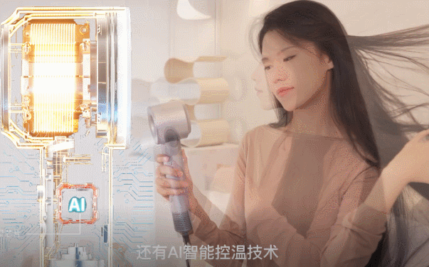Al控温,不伤发 普通吹风机之所以会让头发毛糙,是因为在使用的过程中,会有大量的正电荷运动产生静电。 加上传统吹风机温度过高,容易损伤头发的毛鳞片,表现在发质上就是毛糙、分叉等等。
