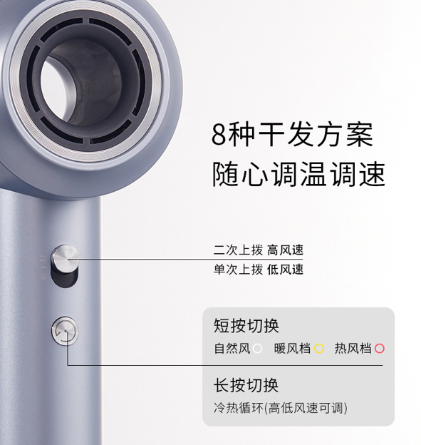 8种吹风模式、噪音轻、便携