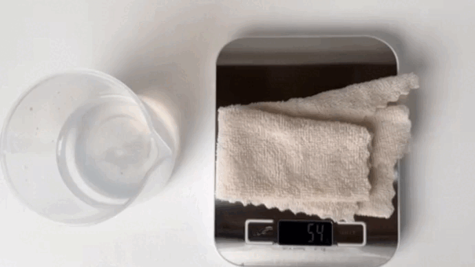 吹完再次称毛巾的重量。