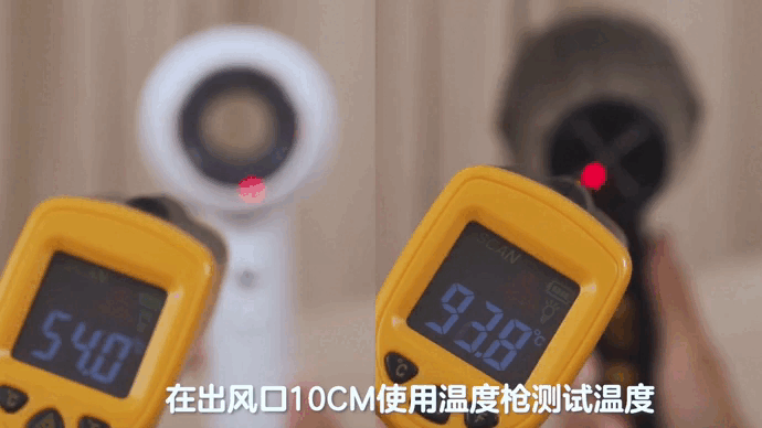 以前家里那台靠高温烘干的普通吹风机,每次拿它吹头发都是越用越烫,温度计一检测,温度甚至超过了100℃!