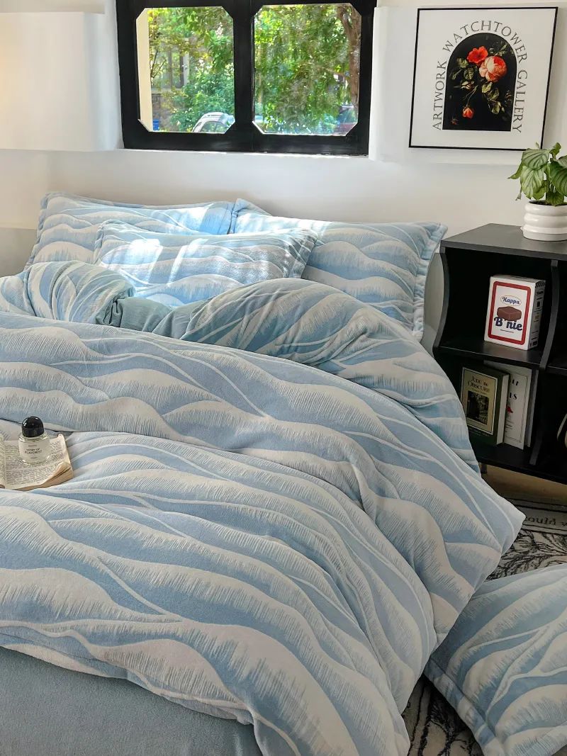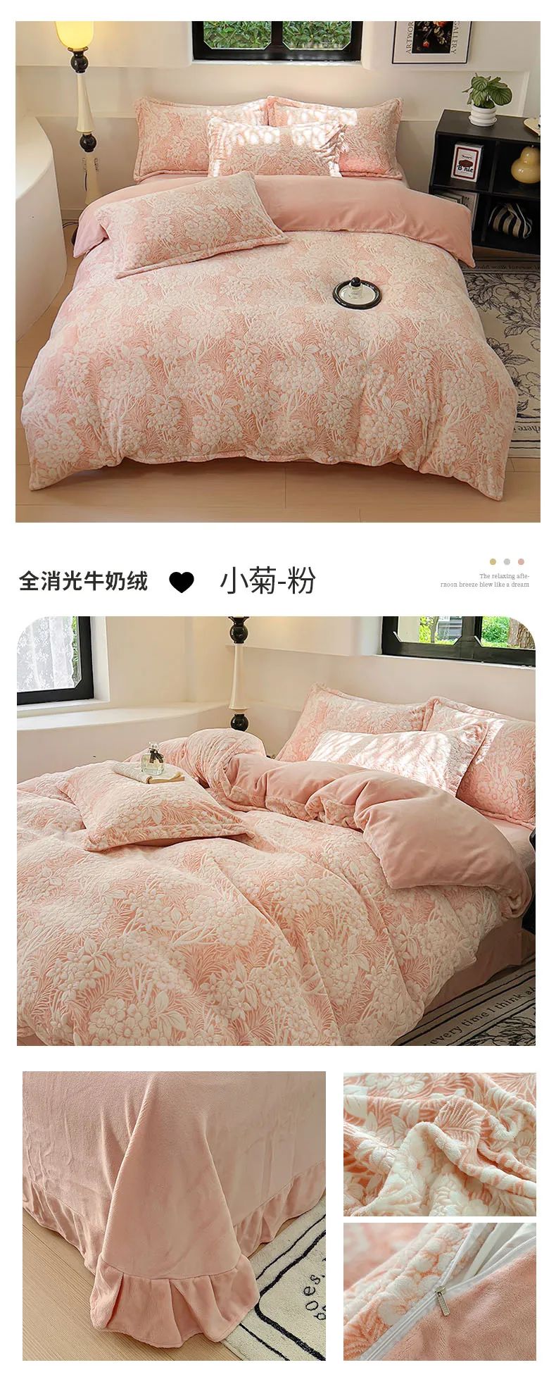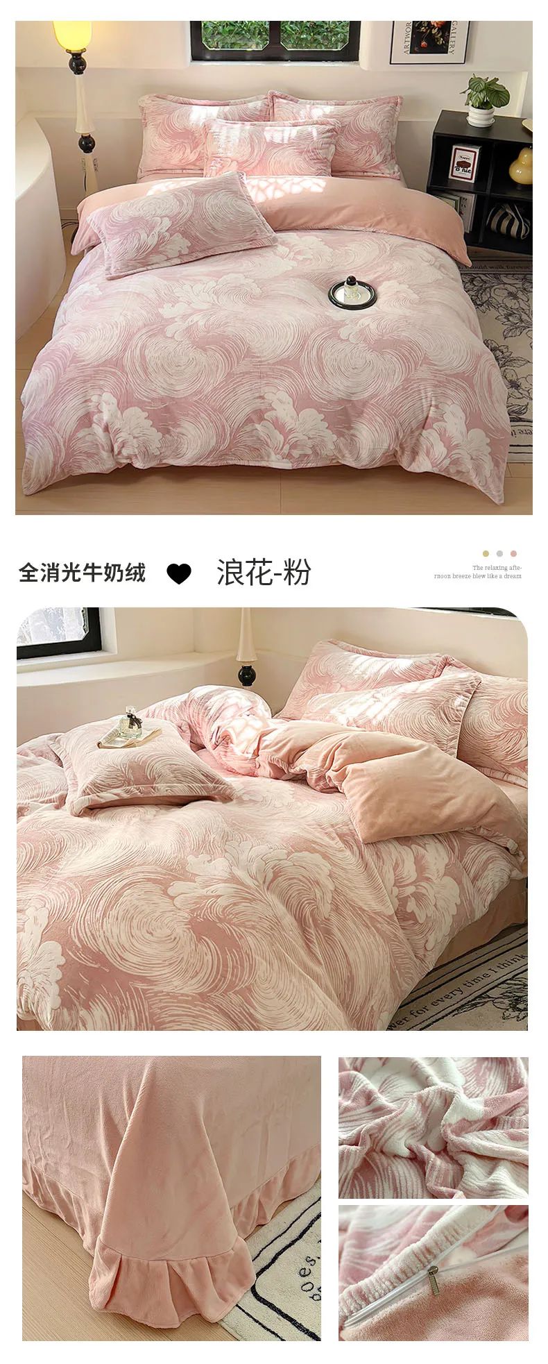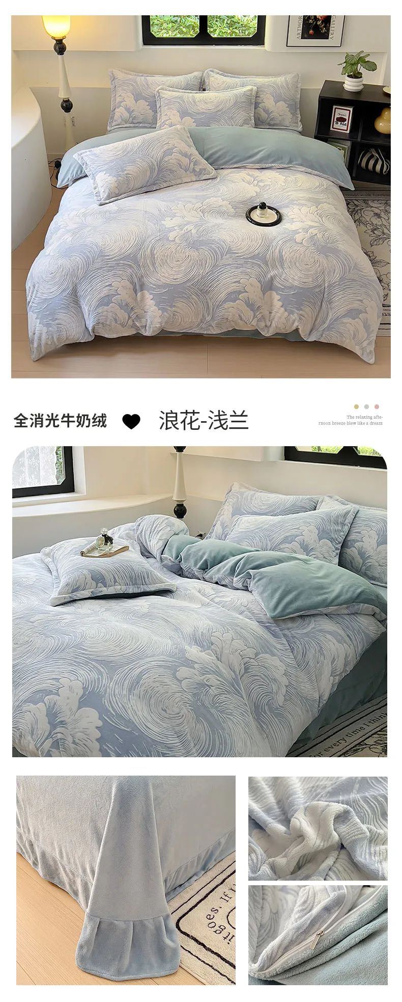 全面包裹保暖:触感如婴儿肌肤,床品再也不是冰冷的存在;温暖覆盖全面:触感服帖,冬天夜晚全身保暖,幸福感嘎嘎提升了~戴丽-粉:柔美的粉色调搭配经典花纹设计,犹如一抹春日暖阳,轻松点亮卧室的温馨氛围。戴丽-蓝:优雅浅蓝调,带来一份静谧与清新,打造舒适自然的睡眠环境。浪花-粉:粉色与浪花的交织,如浪漫海滩的日出般柔情蜜意。浪花-灰:沉稳灰调,低调优雅,营造宁静的睡眠空间。浪花-浅兰:浅蓝浪花设计,清爽与宁静并存,让卧室瞬间拥有海滨度假风情。浪漫花语:细腻花语跃然于面料上,仿佛诉说着温暖与美好的每个夜晚。浪漫玫瑰:经典玫瑰图案,尽显浪漫与优雅,演绎法式卧室的独特格调。浪漫玫瑰-蓝:加入蓝色基调,带来更加沉静的浪漫风情,清新又高级。冷杉-灰:如雾中的森林,低调雅致,质感十足,为卧室增添安然的气息。冷杉-绿:清新的绿意萦绕眼前,让人仿佛置身自然,安享纯净睡眠。流光-粉:如粉色霞光般绚烂柔美,为卧室增添一份梦幻气息。流光-黄:金色流光耀眼非凡,活力四射又温暖怡人,点亮整个空间。流光-蓝:蓝色流光,犹如夜晚的星辰般璀璨,为卧室注入宁静与格调。青艾:复古绿调,低调内敛,演绎自然与经典的完美融合。青艾-浅驼:青艾绿与浅驼的结合,优雅而舒适,极具质感的自然格调。倾慕-蓝:深邃蓝调,简约中透露出一丝浪漫,沉浸感十足。倾慕-浅驼:柔和浅驼色,温暖中带着浪漫气息,贴心守护冬夜的温柔。秋叶:浓郁秋叶配色,像秋日的阳光洒满房间,温馨又惬意。秋叶-绿:清新的秋叶绿,轻盈自然,赋予卧室生命的气息。圣诞鹿-橙:橙色的节日氛围,活泼又温暖,为冬日增添节庆的欢乐感。圣诞鹿-绿:圣诞绿调的点缀,浓厚的冬日仪式感,给卧室增添一丝温馨喜庆。圣诞鹿-米黄:米黄基调搭配圣诞元素,简约又百搭的节日选择。小菊-粉:可爱的粉色小菊图案,甜美又治愈,为卧室增添温柔气息。小菊-绿:清新绿色搭配菊花点缀,满满的自然气息扑面而来。玉馨-橙:温暖的橙色调搭配细腻的花纹设计,为冬日卧室注入活力。玉馨-灰:高级灰色诠释简约与低调的优雅,经典永不过时。圆舞曲:优雅的旋律化作面料上的舞动纹样,浪漫与格调并存,为卧室添上一份别样的情调。价格优惠,能兼具这些优点的市面被子都比它贵!买到真的会觉得赚到的那种~