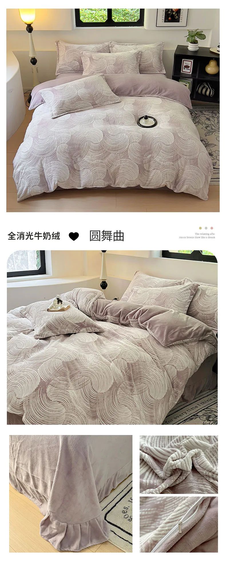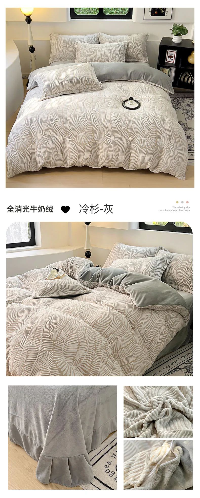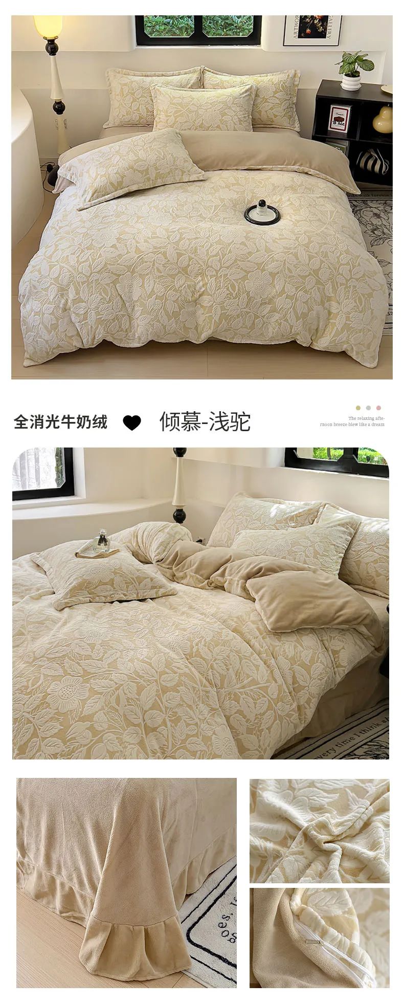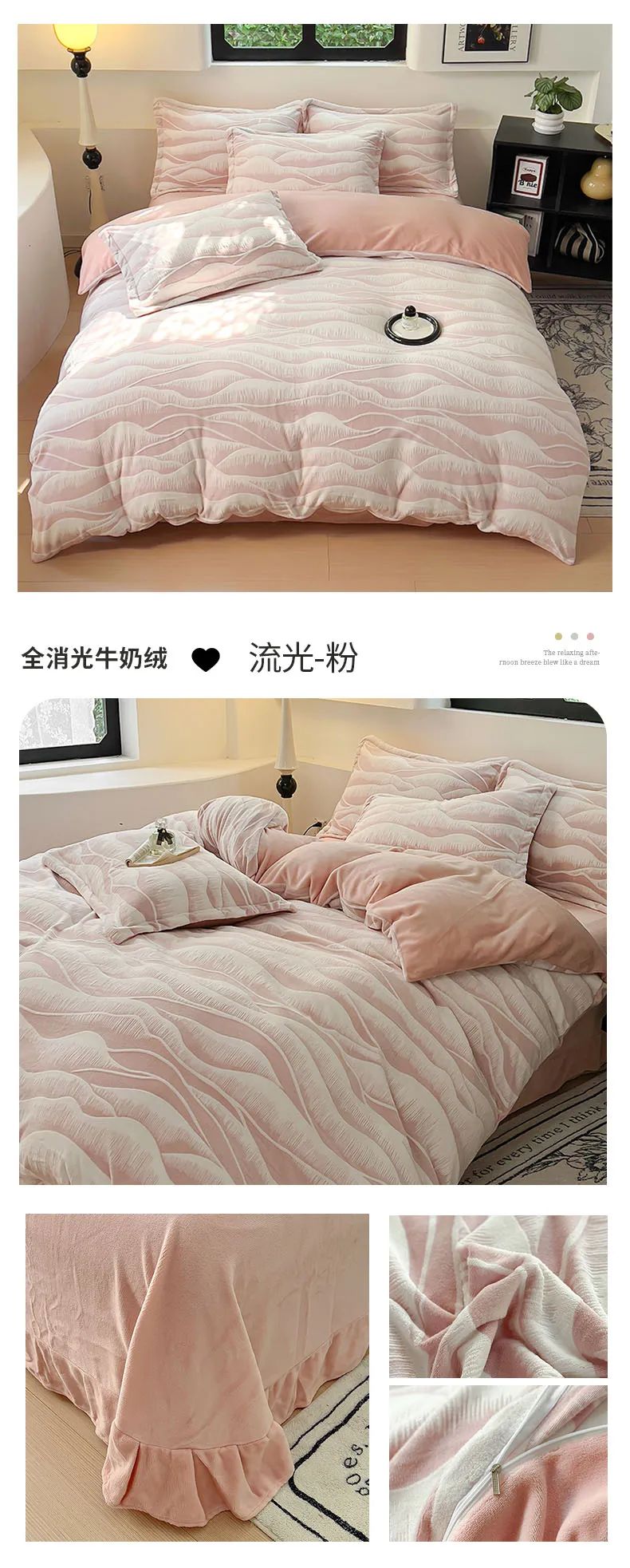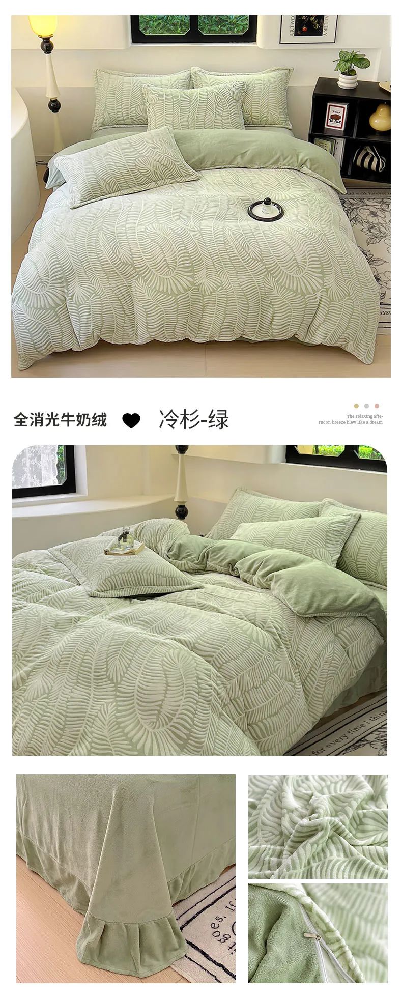 所以牛奶绒四件套在面料中植入柔软的导电丝,能很好预防静电,让睡眠更舒适~而且这款是可以机洗的,做工有保证,活性印染不易褪色、起球、掉毛~更不会缩水变小,一分价钱一分货,洗的次数再多还能像新的一样~179元到手,堪比千元品质!这个冬天的正确打开方式—【高克重雕花牛奶绒四件套】给大家强烈推荐当然不仅仅是品质,还有它的颜值也是小编沦陷原因之一!