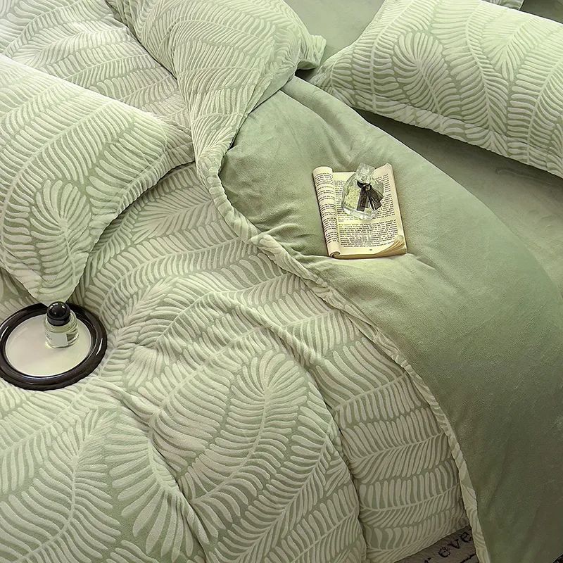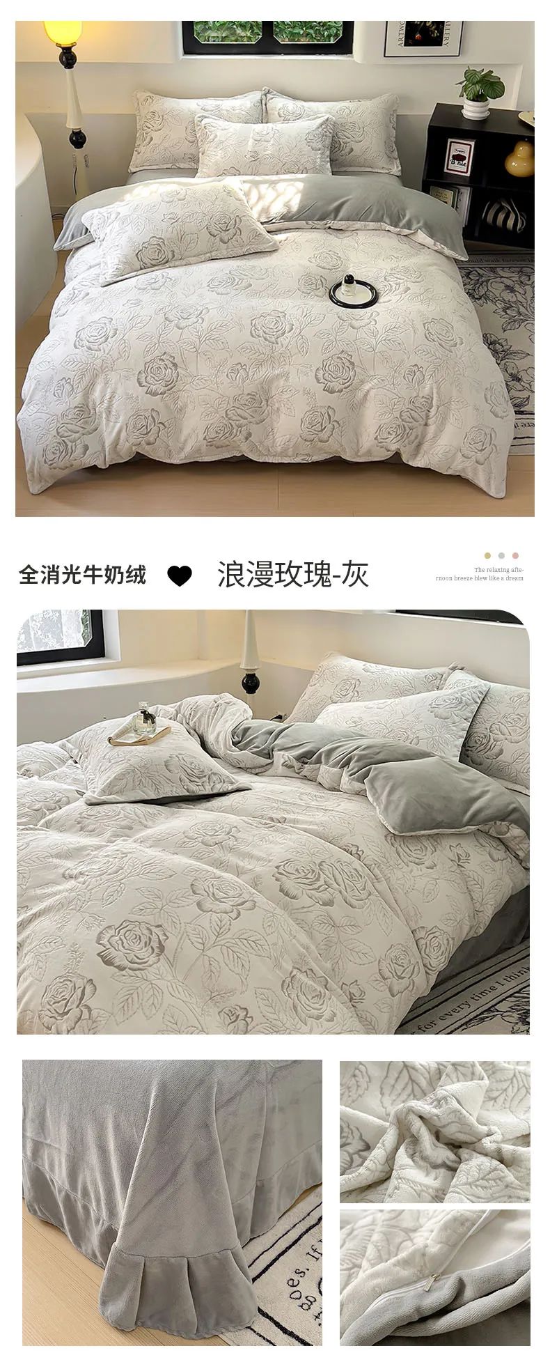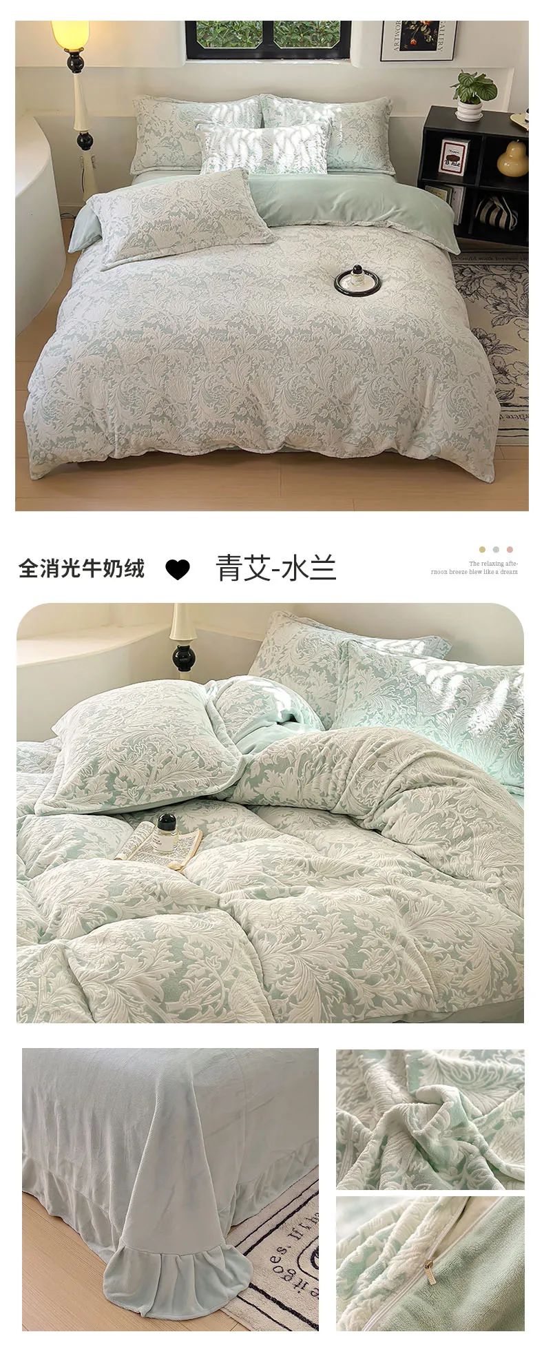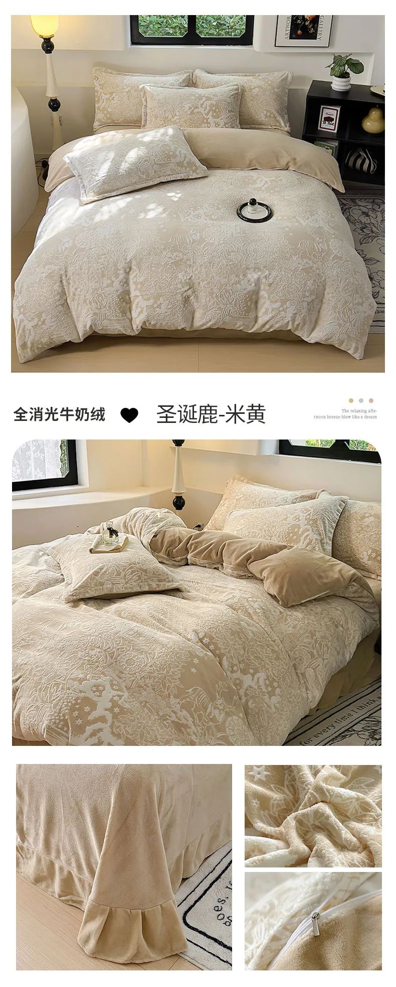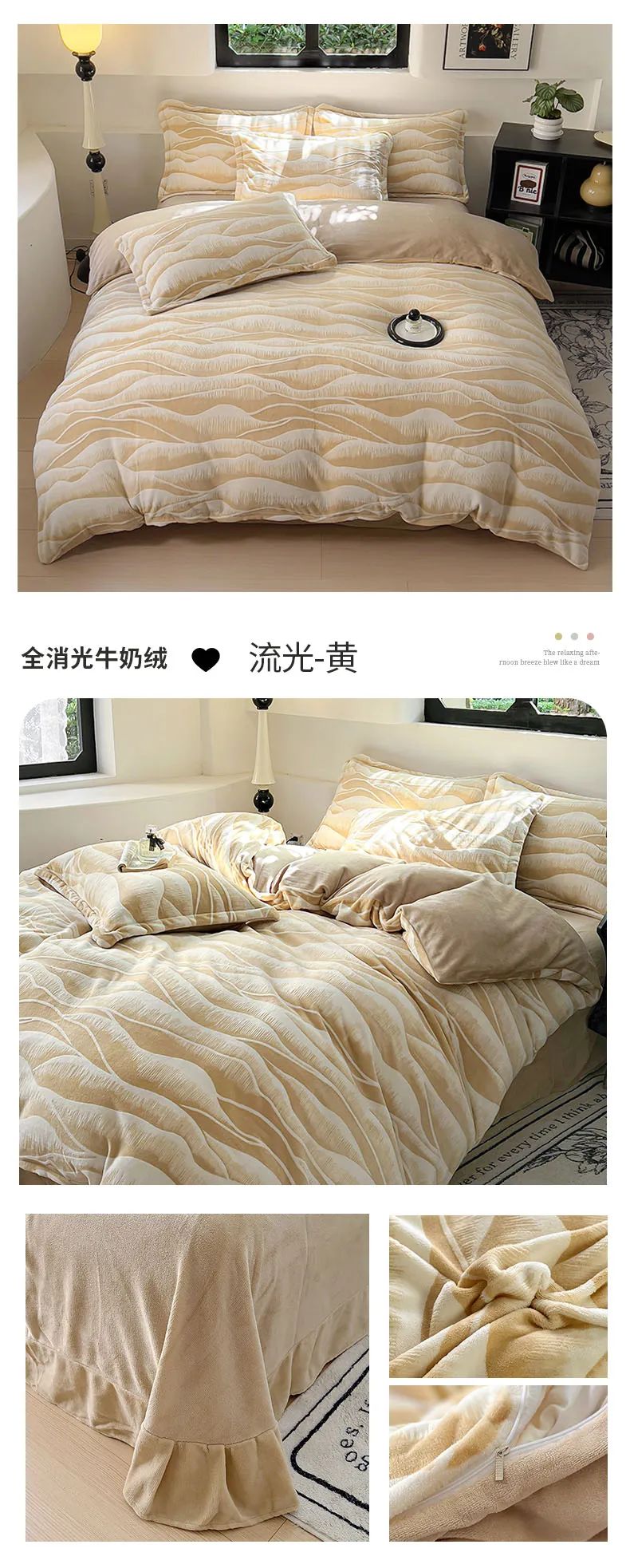 所以牛奶绒四件套在面料中植入柔软的导电丝,能很好预防静电,让睡眠更舒适~而且这款是可以机洗的,做工有保证,活性印染不易褪色、起球、掉毛~更不会缩水变小,一分价钱一分货,洗的次数再多还能像新的一样~179元到手,堪比千元品质!这个冬天的正确打开方式—【高克重雕花牛奶绒四件套】给大家强烈推荐当然不仅仅是品质,还有它的颜值也是小编沦陷原因之一!