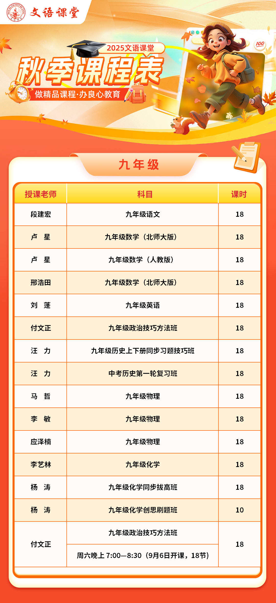 秋季课程表