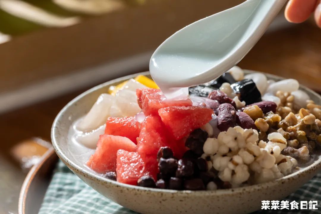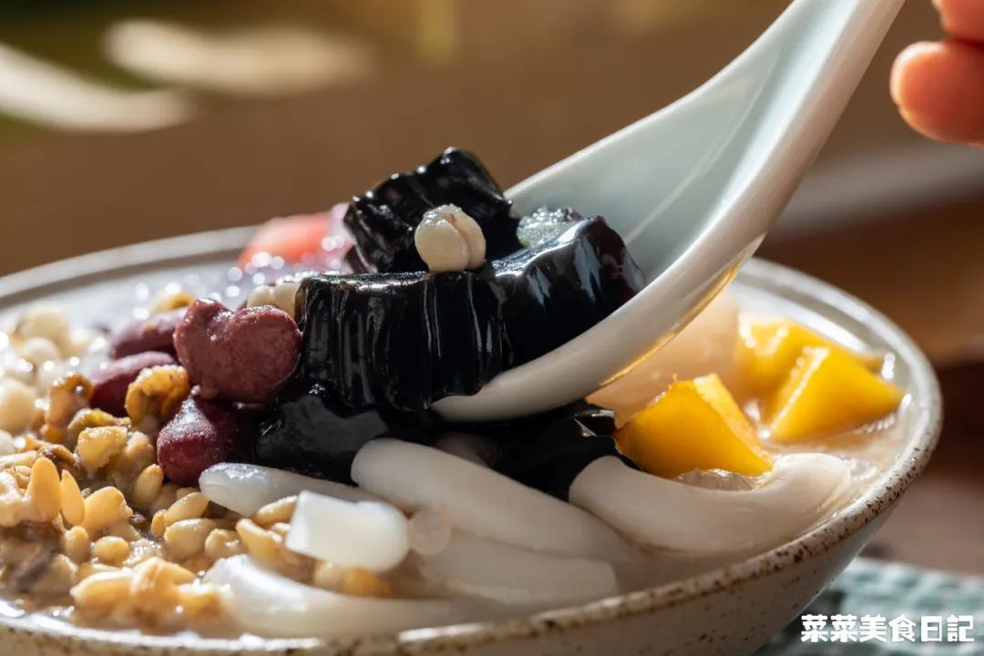 椰果、西米、大麦仁、玉米、薏米、绿豆、红芸豆,毫不含糊,满口都是料!