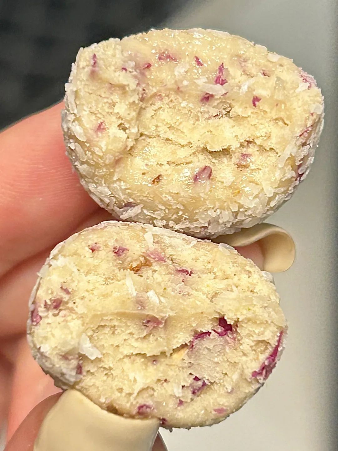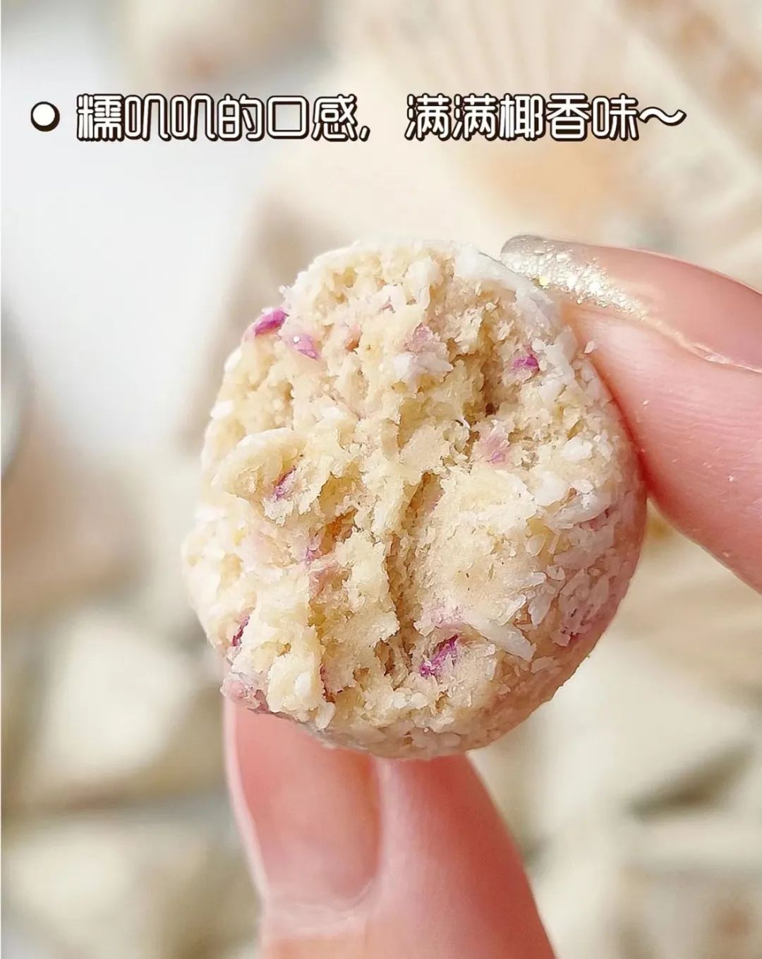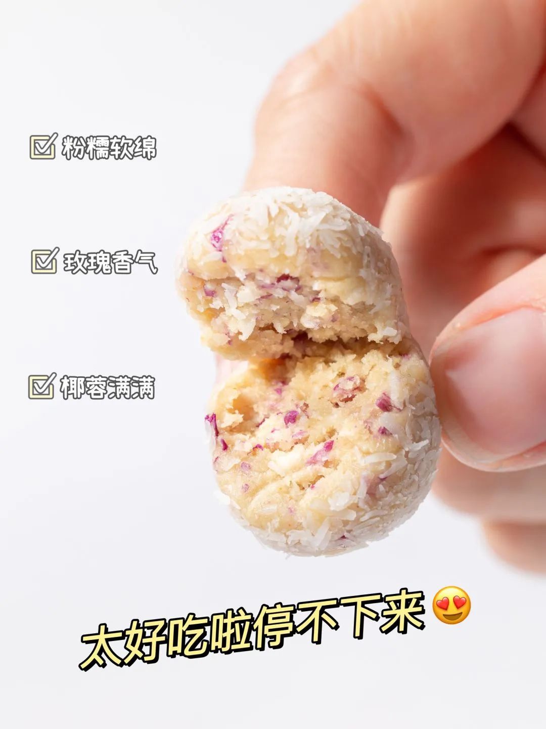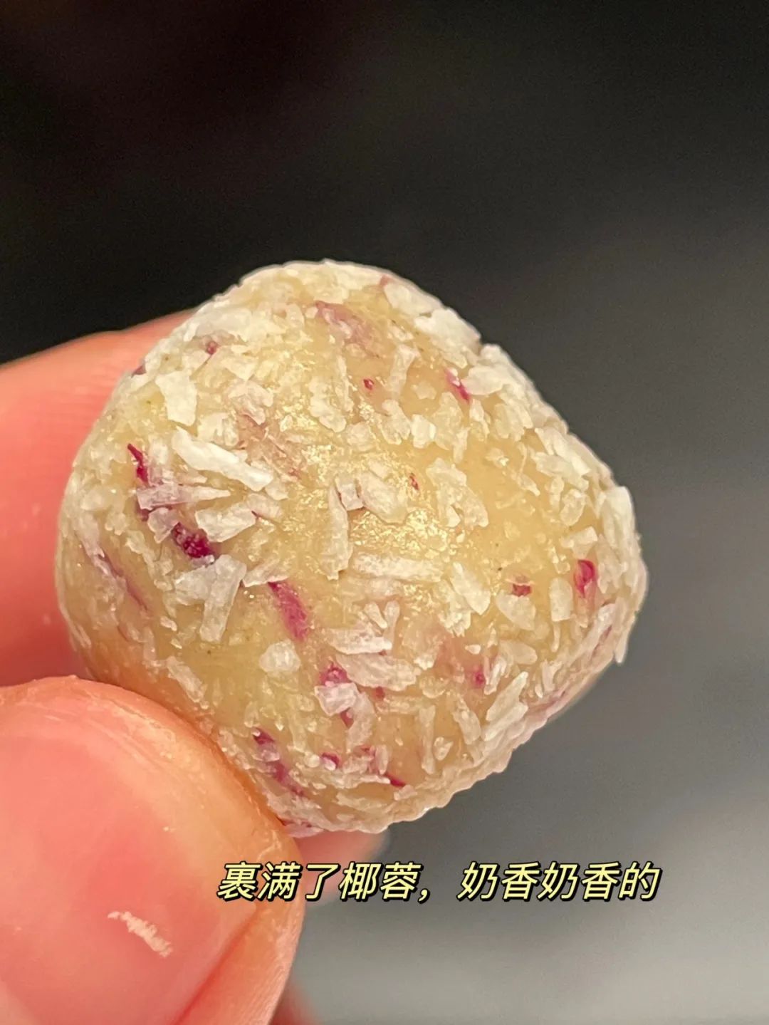 椰蓉满满的,一口咬下去,玫瑰花香四溢,嚼起来糯叽叽。