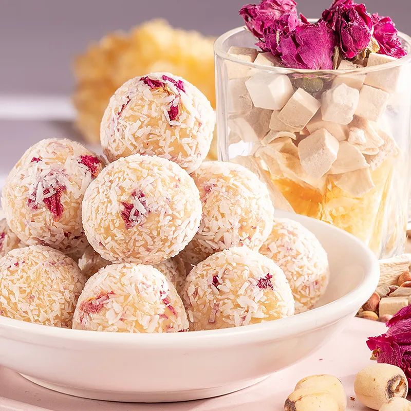 破壁研磨后低温烘焙,口感好,更易吸收。外裹椰蓉,内藏红玫瑰,吃到嘴里奶呼呼的,每一口都是宝藏!