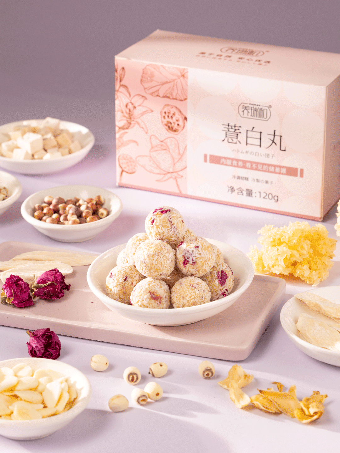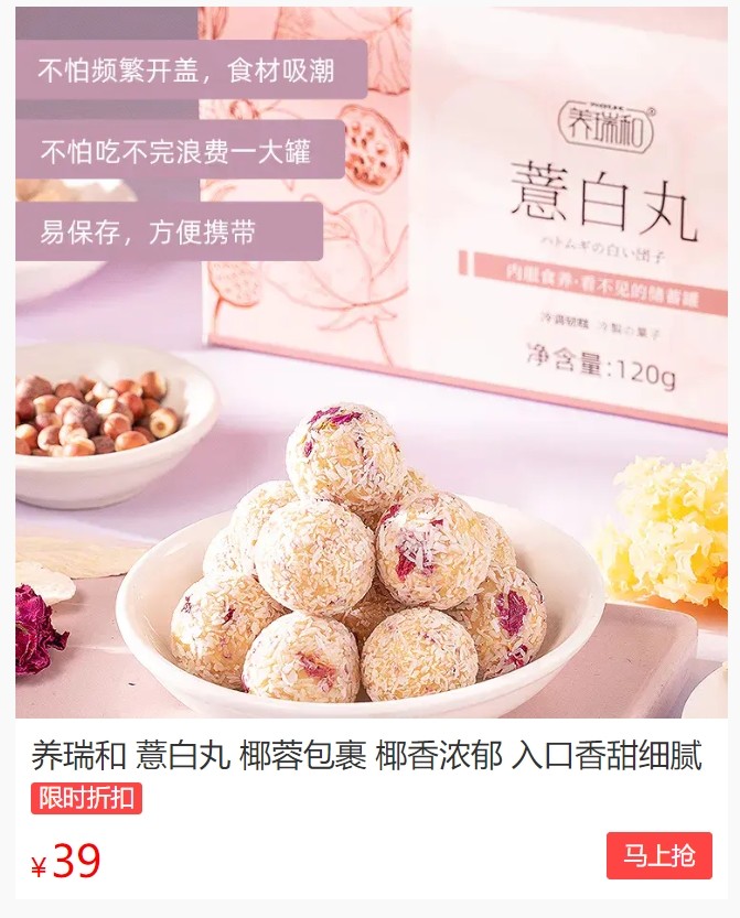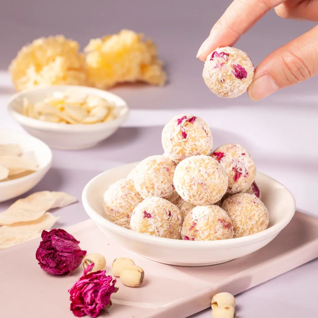 加上重瓣红玫瑰、椰蓉藕粉改善口感,多种食材经过选、洗、蒸、晒...数十道程序,保留润肺养颜之功,满满营养挑战鸡蛋肌。