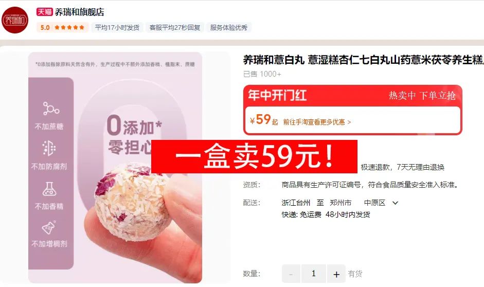 这种高品质无添加的养生好物,一般不算特别便宜,旗舰店日常卖59元一盒。