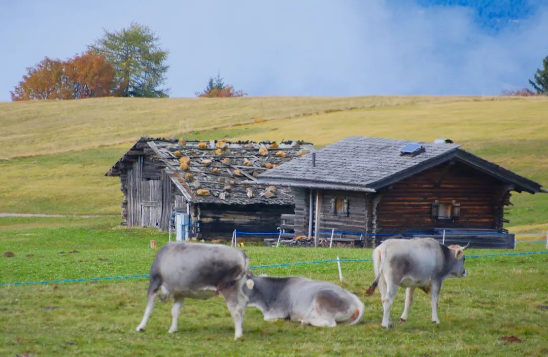 阴晴雨雪的转换,橙红黄绿的色板,不过是多洛米蒂的日常换装。从远山层云,到木屋丛林,再拉近到眼前的野花牛羊,相机平面化的记录敌不过对眼底心底的冲击。