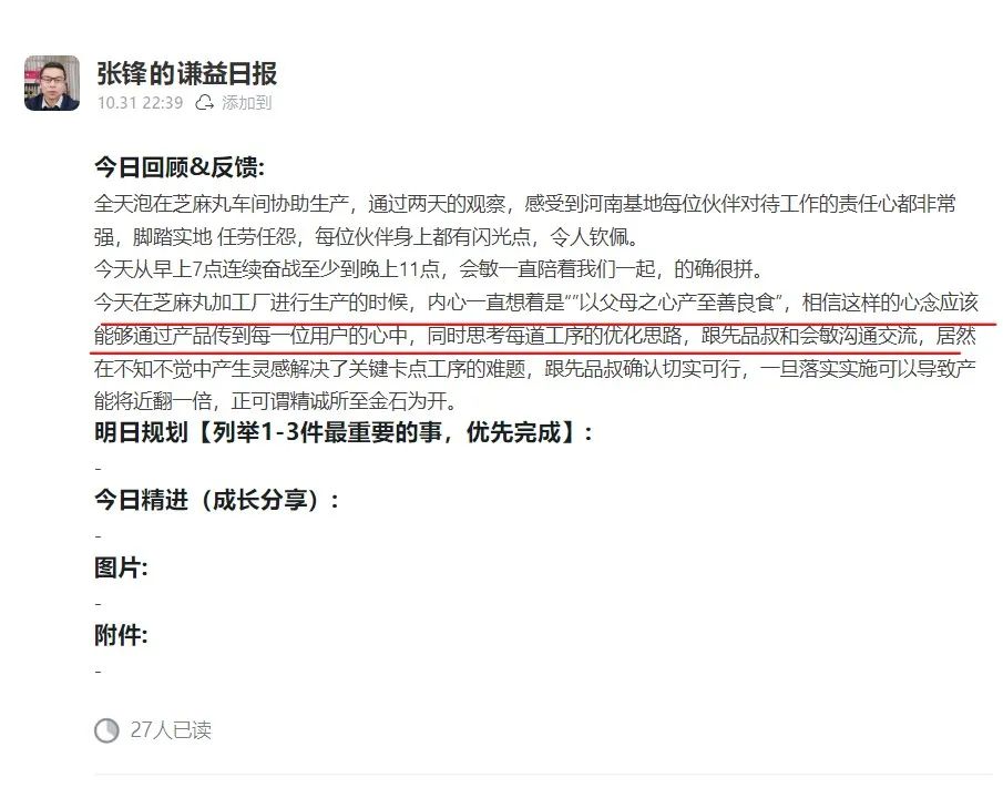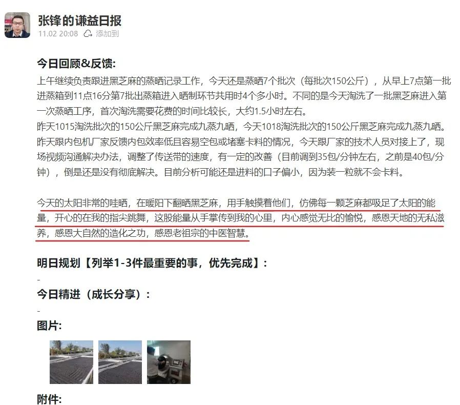 细细感悟益友们一份份回复里沉甸甸的信任,再亲身实践了芝麻丸的生产加工过程之后,才明白每一粒九蒸九晒的芝麻丸,都是人与天地自然的共创。既是伙伴们日夜呵护心血的结晶,又是一个一个益友一个一个家庭无数正念的感召。