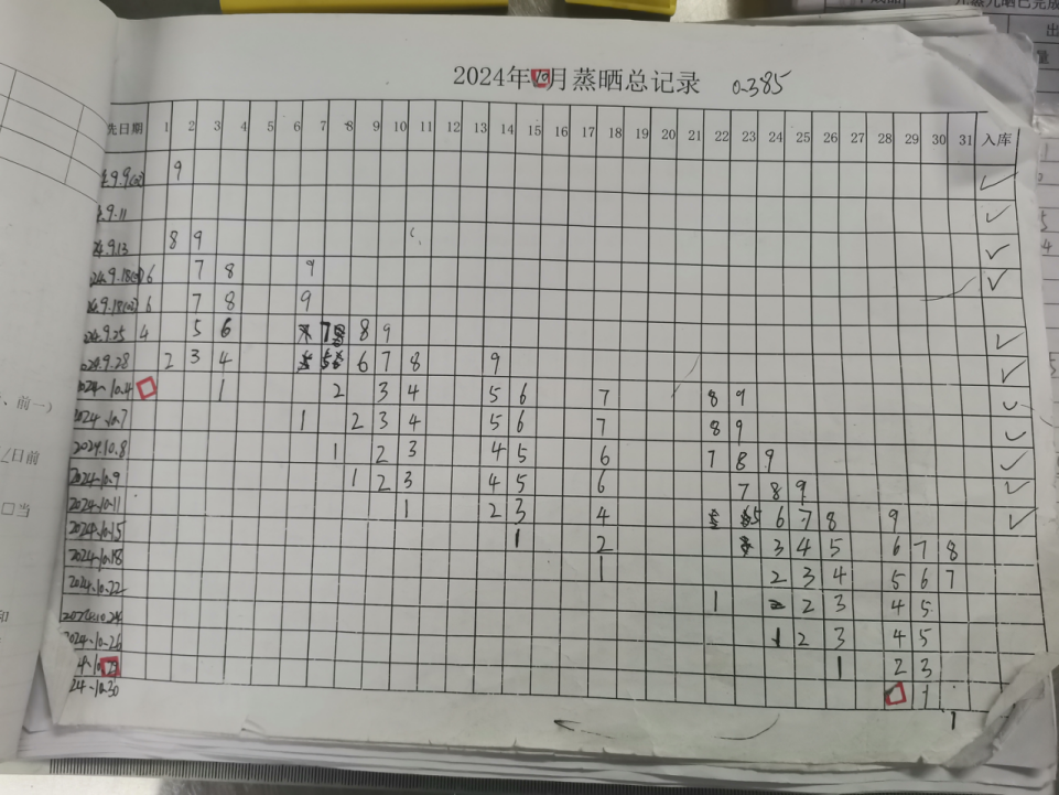 我记得11月1日那天上午天气是阴天,虽然这一批芝麻已经蒸了七次,也完成了摊晾,但是厂里负责质检的邓欢告诉我,阴天不能计算到晒制的时间里,需要等出大太阳后,继续晒足5小时才算一次完整的蒸晒,真正是炮制虽繁必不敢省人工!