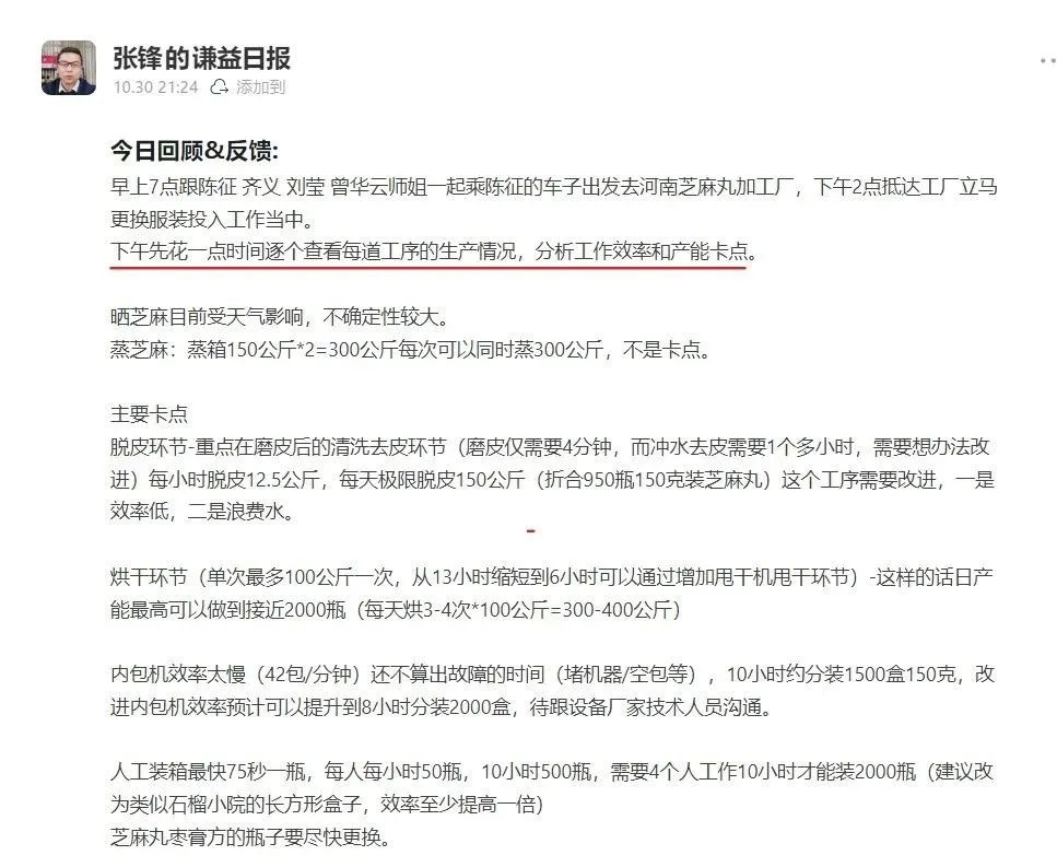 5个人6天时间,连续几天泡在芝麻丸车间协助生产,伙伴们从早上6点连续奋战到至少晚上11点。我这几天主要负责跟进黑芝麻九蒸九晒环节的记录工作。