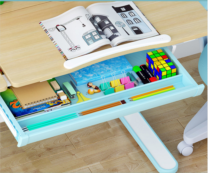乐歌思学·学习升降桌还在原先学习桌的基础上,增加了大空间的抽屉,可以将学习工具按照区域放入,合理的收纳提升了孩子的学习效率。
