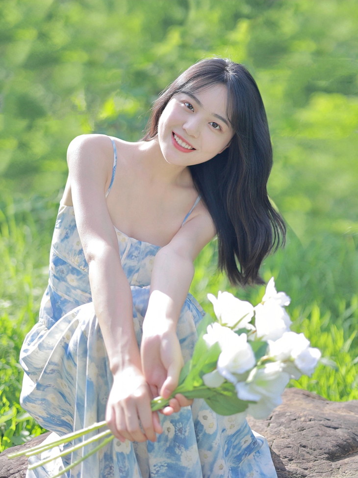碎花小蓝裙配上明媚的笑容,最美的样子不过如此!