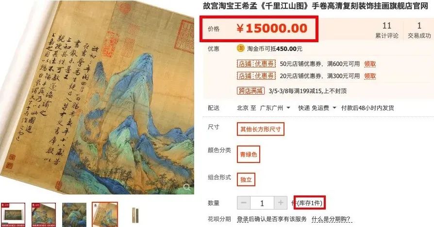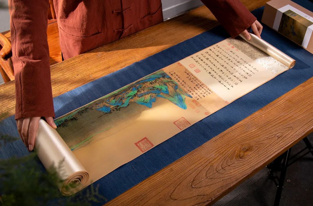 除了《千里江山图》采用1:2比例复刻,其它画作尺寸均采用1:1比例复刻,