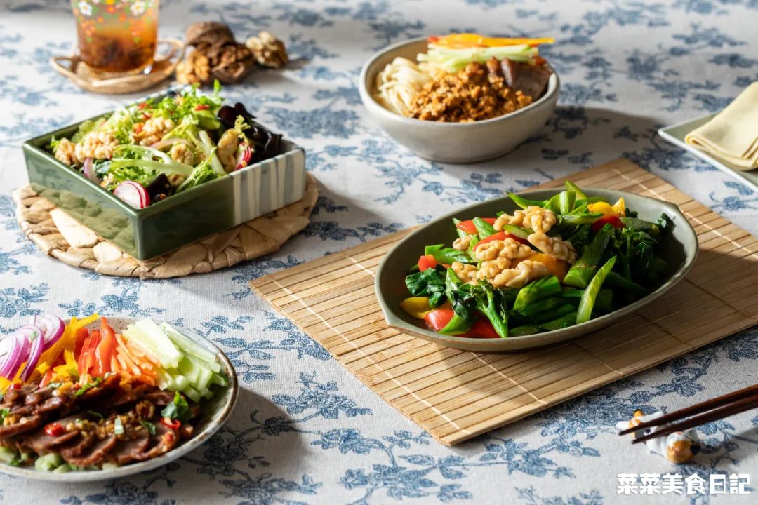 因为水分大,鲜核桃热量、脂肪和碳水都更低,家里老小、减脂姐妹都能放心炫。新鲜核桃富含氨基酸,煲汤时丢一把,能充当肉的角色,提鲜又增香。蔬菜一洗一切,调个料汁一拌就成,还可以继续往里加入喜欢的食材。