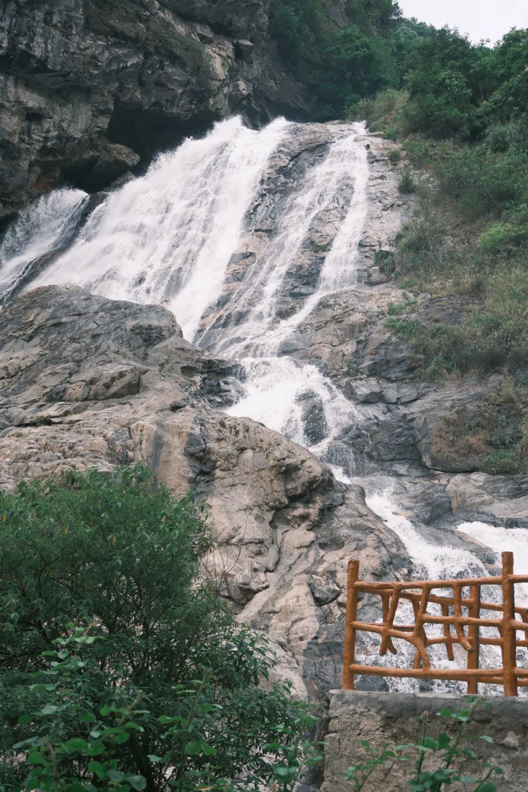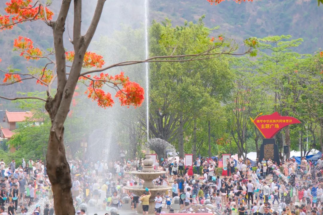 森林徒步之外,哀牢山沿途行车中,还能看见一条银白色丝带从山林中倾泻而下,这便是南恩瀑布。雨季瀑布水量更大,犹如雷霆怒吼,是迷雾森林哀牢山不容忽视的一处经典,也被誉为“迷雾中的珠宝”。五一期间,行车经过嘎洒,还偶遇了当地的泼水节。虽然山中雾气起时还要裹紧冲锋衣,山下却是这般清凉景象。嘎洒是中国花腰傣最大的聚居地,也是花腰傣文化保留得最为完整、最为集中的地方,素有“中国花腰傣之乡”美誉。这趟行程全程无需露营,住宿也有哀牢山农家和轻奢版酒店两种类型,可以根据自己的需求自行选择。轻奢酒店处更是无需前往观景台,直接观赏到堪称“滇中云海一绝”的哀牢山云海日出。这趟天气不太好,只能看见清晨远山云雾炸开的一缕天光。据说天气晴好时,哀牢山的云海日出尤为壮丽。当清晨的第一缕阳光透过迷雾洒向山谷,哀牢山的云海便如同天际裂开的一道光门。金色的光芒穿透厚厚的云雾,将山脉的轮廓逐渐显现,云海如同大地的羽翼,托起这片迷雾森林,使整个山脉都充满了诗意的氛围。
