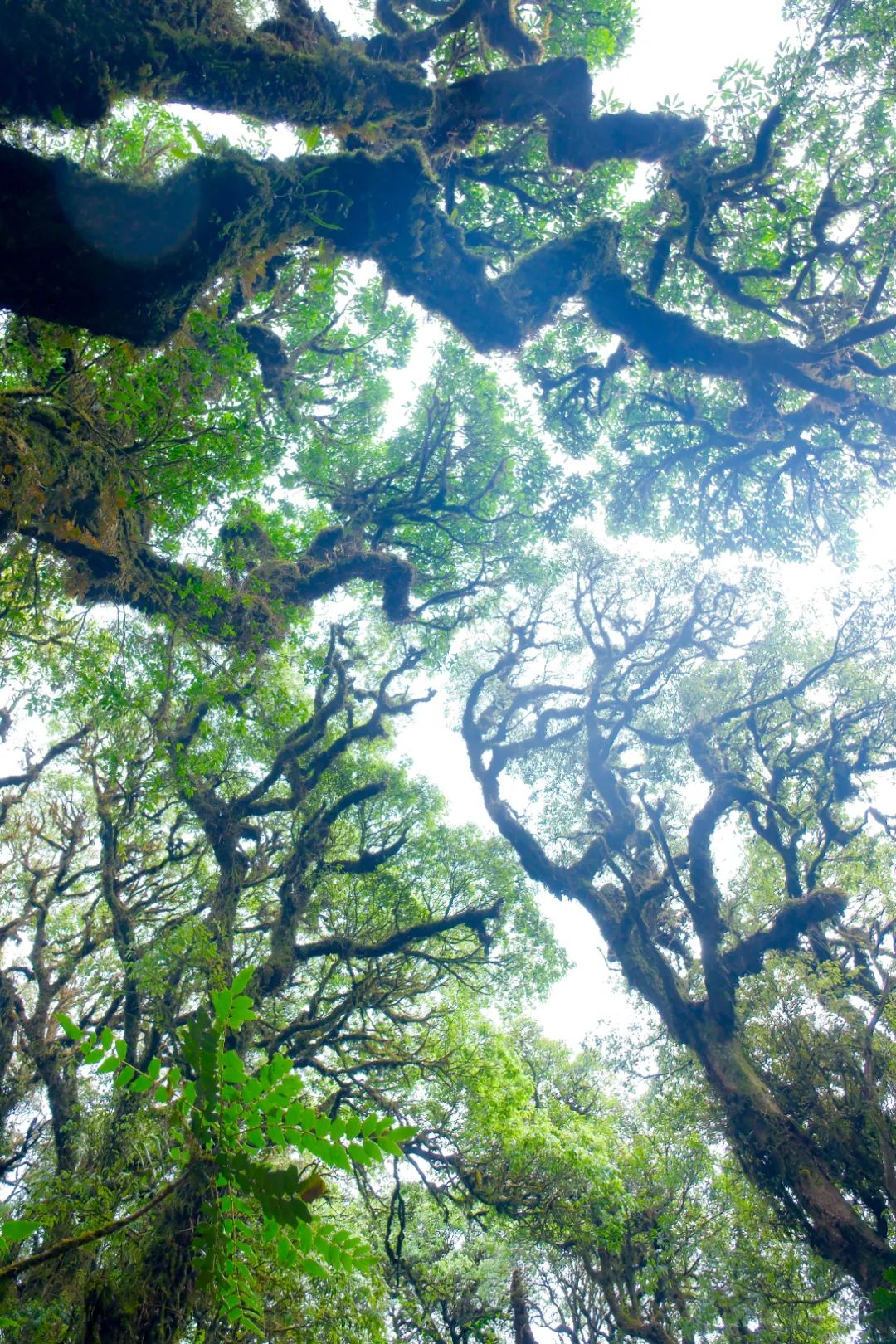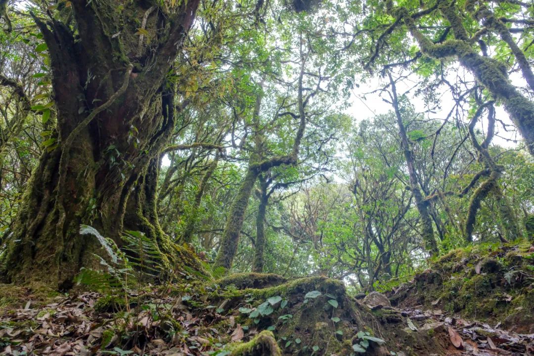 这里常年降水充沛,有同纬度地区保存最完整的亚热带中山湿性常绿阔叶林,林中空气异常湿润,加上常年雾气弥漫,丛林中的树木石头草地上共生了大量的苔藓蕨类,堪称现实版“云南虫谷”。