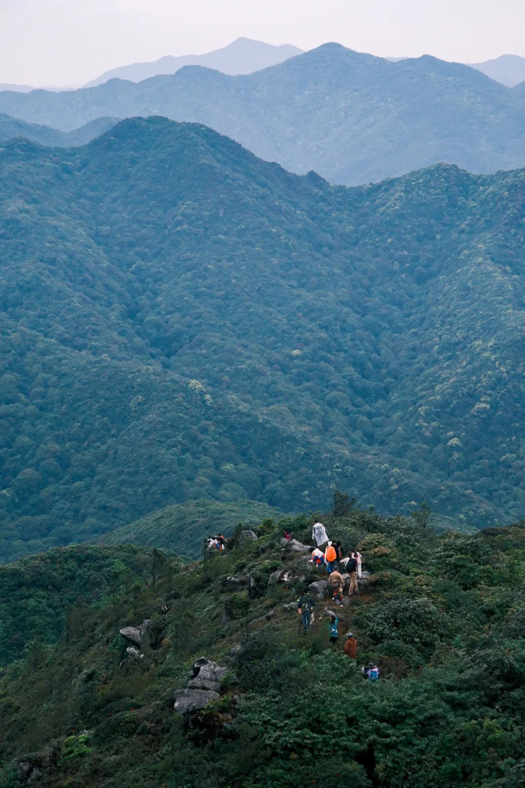 饶是如此小众有距离感的地方,却在去年因为一则博主的视频一夜爆火!事情源于一位账号 ID@山取 的颜料师博主在抖音发布的自己在哀牢山深处河流中划船寻找异极矿的过程——弥漫于森林中的雾气,未知的河流,诡异的配乐声,加之博主“我可以百分百确定,这个水里绝对有什么东西,而且绝对不是鱼···不行不行咱们得赶紧上岸,我有种不好的预感!”的旁白渲染,让视频莫名爆火,博主涨粉200多万,哀牢山也由此成为当年十一顶流目的地之一。被好奇心驱使的游客纷纷在国庆期间赶去哀牢山打卡,网友戏称“国庆哀牢山来了一亿人”“瘴气都不够吸了”……距离哀牢山成为“顶流”已过半年,如今的哀牢山,到底是什么状况?走进其中,是不是真的就是“以身犯险阻”?今年五一,徒步中国哀牢山小分队24位队员和4位领队向导一起深入其中,见证了传说背后真实的模样……那是一片真正的小众秘境!虽然热度仍在,前往哀牢山的途中仍然可以见到不少私家车,但徒步其中的两天,我们见到的人屈指可数——第一天徒步只遇见一对夫妻,因为不识路,沿途一直跟着我们队伍;第二天遇见一支小队伍,中午吃路餐时偶然交汇又分开。出山后刷到五一那些堵到灵魂出窍的地方盘点,竟有点恍惚:我们真的是过了一个五一吗?一个到处都是人挤人的国民假期五一?置身哀牢山,你会被这里蓬勃的生命力所感染。那极具造型感的森林景观,树枝青石上苔藓蕨类密布的景象,混着古代文明遗迹的传说,让人立时感受到一种来自时间和自然的震慑。这个五一云南天气不太好,赶上哀牢山两日阴沉有雨,阳光一躲进云层,森林更显得茂密,似乎连风都透不进来。你会体验到一种被森林包裹的感觉,像初生婴孩的襁褓,越往深处走,这种包裹感越浓烈。植物在此野蛮生长,也因此造型独特,肆意展露着生命的张力,仿佛从未被职场折磨过的年轻人。浓密的藤蔓是年轻人饱满的情感,和树梢一起争着向上、向上。在偶然钻出丛林,走在山脊上的时候,似乎才会想起天是蓝色的。沿着几乎被落叶掩盖的小路再次钻进林子,天空又重新变成绿色。在云南的其他地方,我也曾见过一些茂密的原始森林中,它们同样古木参天,藤蔓缠绕,蕨类苔藓遍布,但大多只是存在于某一段路,但在哀牢山,极目所见,皆是如此。下了在山间盘绕的公路,从徒步起点钻进林子,便是瞬间掉进了一个“幽谷秘境”,一个仿佛会通向未知但迷人的梦境的入口……半天的车程后,第一段的小环线徒步一般从下午开始,6km左右,第二段徒步则从景区出发继续深入,全程穿越线约12km,线路本身的强度不大,老驴可以轻松溜腿、沉浸体验,新手也可以加油完成挑战。队伍里一位可爱的姐姐第一次走多日徒步线,也是第一次报名参加徒步中国的活动。出发前,姐姐的朋友们充满了担忧,知道活动位置后,忧心忡忡地问到:“靠谱吗?危险吗?会不会被卖到隔壁缅甸去?”