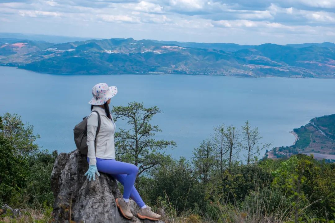 牢山日出云海。图/周游哀牢山徒步之外,返回昆明途中,我们还会去到抚仙湖,登临麒麟山,解锁滇版“麦理浩径”。离开哀牢山山区,天气转好,气温陡得升了上来,阳光点亮宽敞的林间土路,抚仙湖在远处波光粼粼。抚仙湖是中国最大的深水型淡水湖泊,形状像一个倒置的葫芦,湖水清澈、晶莹剔透、碧波万顷,被古人称为“琉璃万顷”。我们要徒步的麒麟山在抚仙湖西岸,呈南北走向,海拔约2468米,是当地人的神山,也是观赏抚仙湖极佳的观景台,后半段林中坡陡,怪石嶙峋,也被誉为滇版“麦理浩径”,登临山顶,抚仙湖一览无余。麒麟山徒步。图/乌木队伍里有位正读初中的小妹妹,说起其他同学假期很多人会选择宅家打游戏时,另一位队友大哥感慨道 “宅家看电视打游戏这种80多岁都能做的事情,为什么要年轻时浪费时间啊!”是啊,趁着对世界依然拥有旺盛的好奇、趁着有还可以锻炼走动的身体,与其荒废,不如多去看看!如果你正在寻找一处真正的“秘境”,一处最 “特别” 的森林,一次 “大饱眼福” 的不同体验……走,我们去哀牢山!
