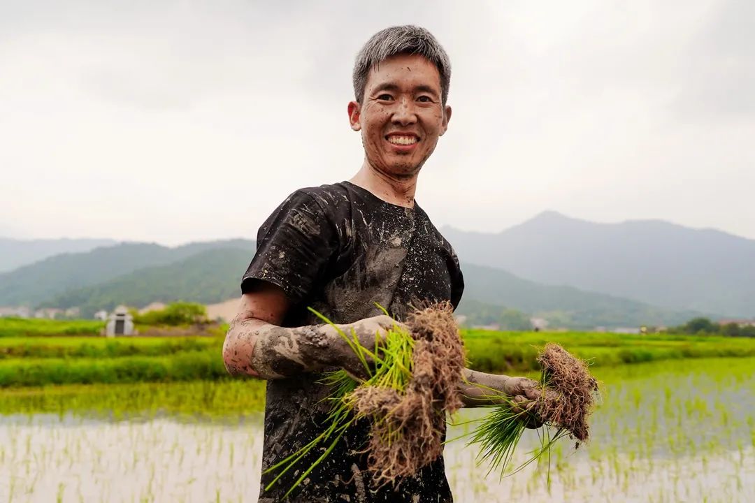 程锦中丨39岁,湖北黄梅县人,2015年开始和谦益合作种植水稻,今年是第7年。“跟谦益(农场)合作,我是受益最大的一个人,种植这块一年收入有十多二十万,现在车也买了,房子也做了,对我的人生可以说是翻天覆地的变化。刚开始村里农药化肥到处大量滥用,现在我们来了之后土壤改变了很多。原本田间越来越少的泥鳅、青蛙、萤火虫也多了起来,让我们的环境起了很大的变化。这块老百姓都是很认同的,周边的老百姓也在模仿我们。跟着我们学,不打农药化肥。很多人找我买饼肥。他们说跟你们一样,我也不打农药不用化肥,种一点粮食自己吃。”