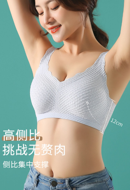 这款内衣采用加高的侧比设计,巧妙收拢腋下游离脂肪,在温柔包裹,舒适无压的前提下,即使不用钢圈,也能做到“小胸有型,大胸不晃”!