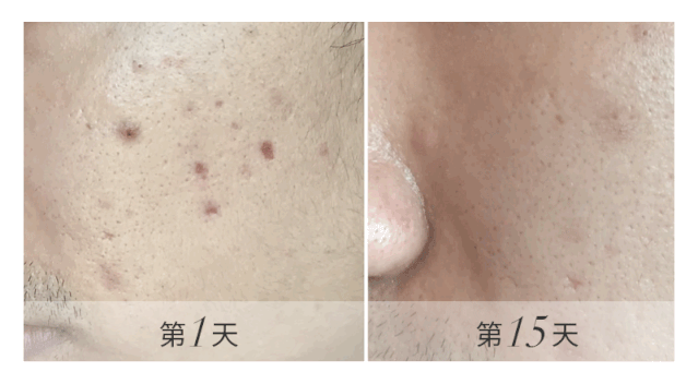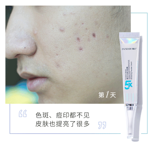 为了让大家看到真实的美白祛斑效果,我还让一位长痘痘的小哥哥做了28天的真人测试,并全程记录: