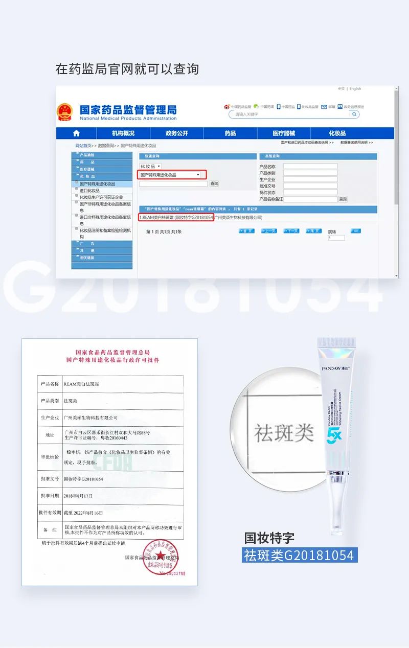 作为美白淡斑界的“三好学生”,这款精华霜拥有国家药监局颁发的“美白淡斑特证”,在药监局官网就可以查到哦~