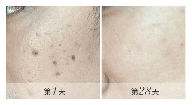 用到28天,就比较明显的能看到,痘印真的在变淡。