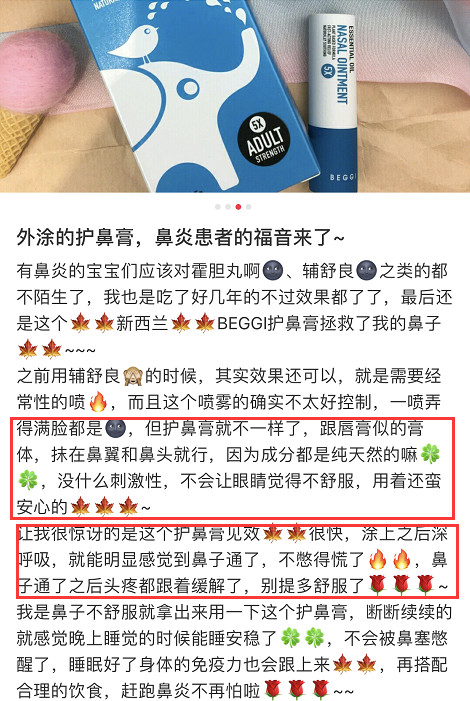 由此,广受大家好评的BEGGI鼻精灵麦卢卡蜂蜜护鼻膏就此诞生。帮助千万鼻炎患者摆脱鼻炎困扰。