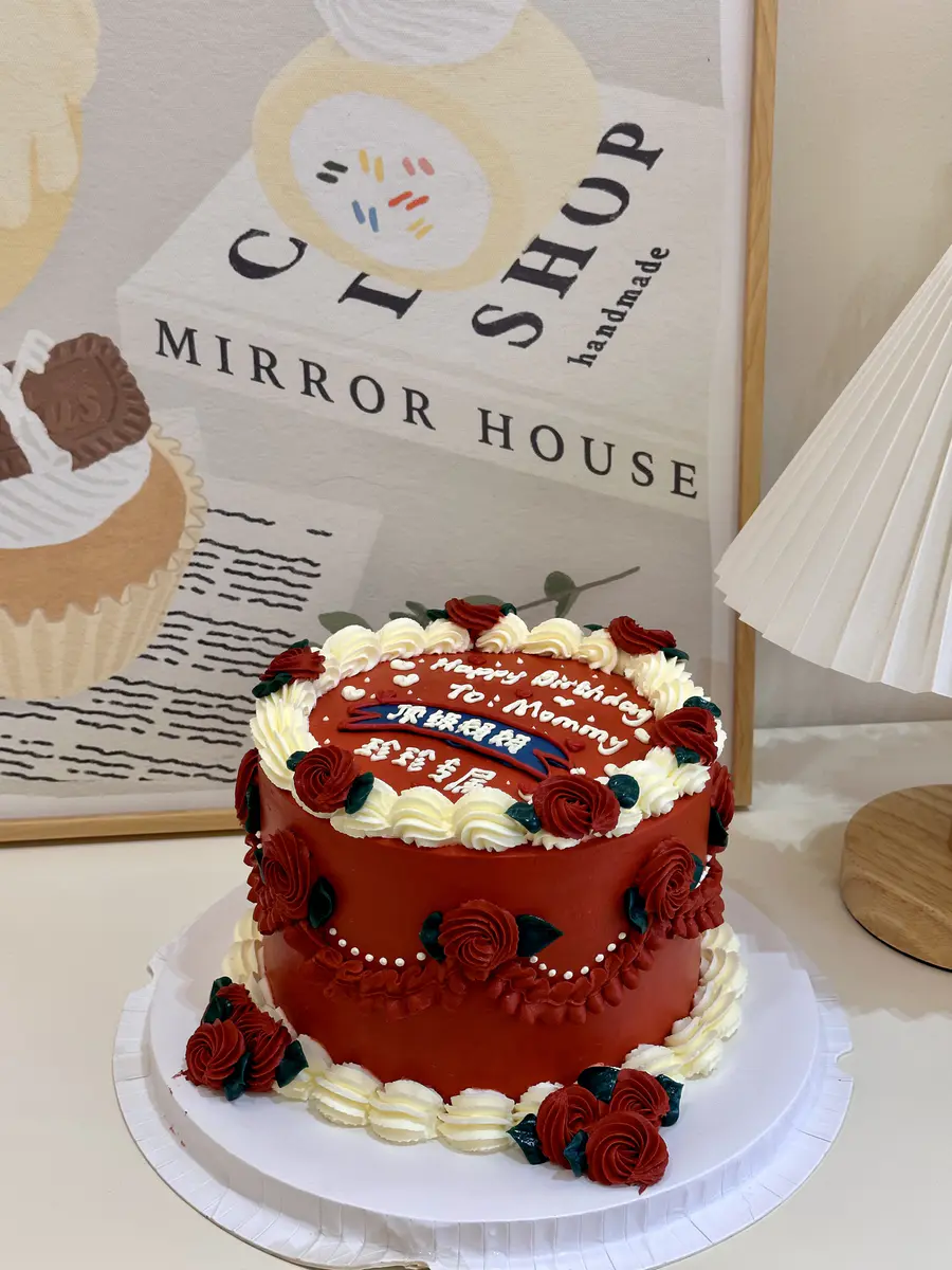 复古风深红色玫瑰花奶油定制