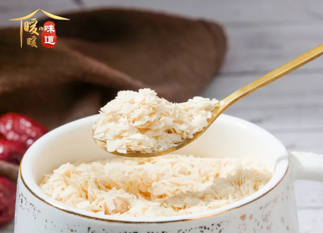 暖暖推荐的即食雪花片,配料上清清楚楚写着“铁棍山药(添加量100%)”,比那些来路不明的即食山药粉靠谱多了! 用它制作而成的雪花片,通体洁白,很好保持了山药食用时的口感,避免了山药储存过程中水分和营养成分的流失。