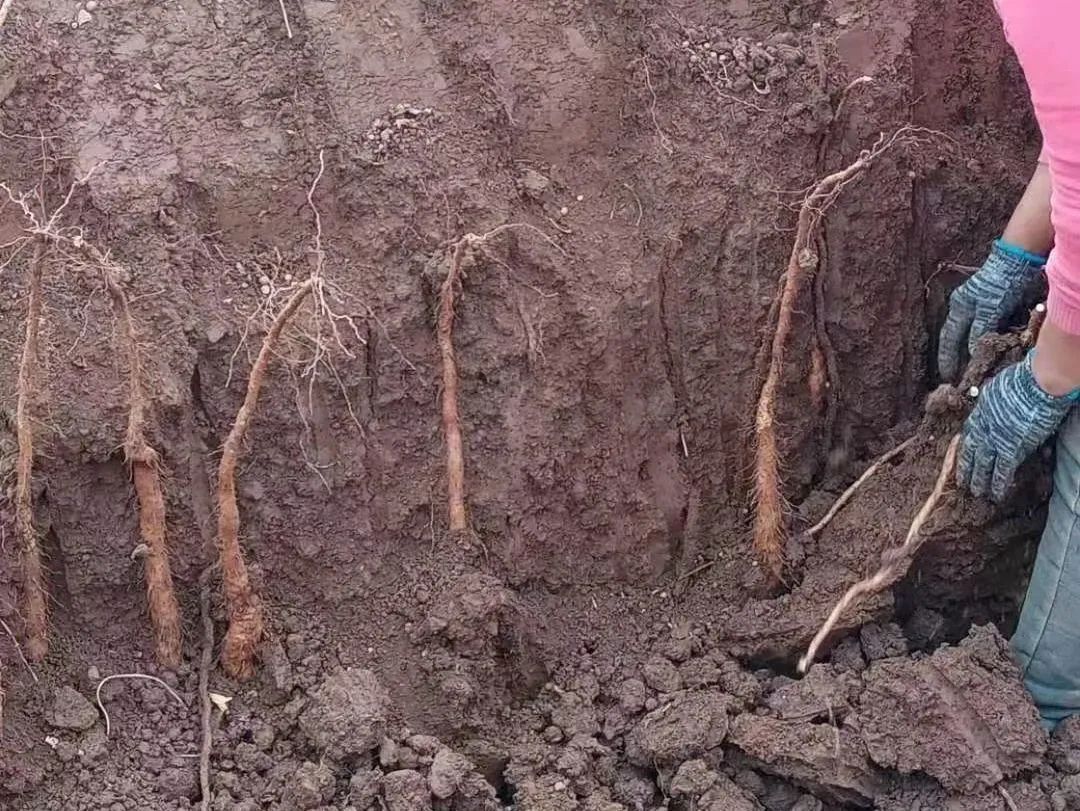 因为土质坚硬、形状曲折,植根还很深,现代化的挖掘设备也不敢轻易挖掘这些山药。