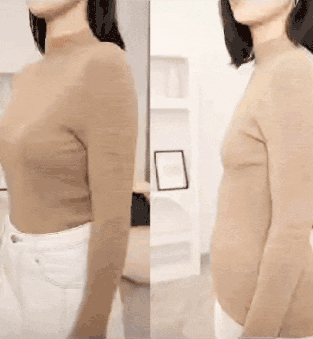左边挺胸确实比右边看起来身材更好▼